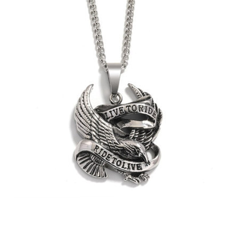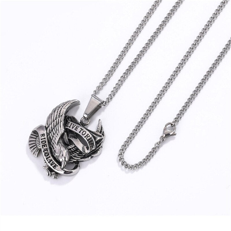 Gifts Punk Style Male Rider Eagle Necklace Pendant Ride To Live Necklace Retro Pendant with Whip Chain Men Woman Jewelry