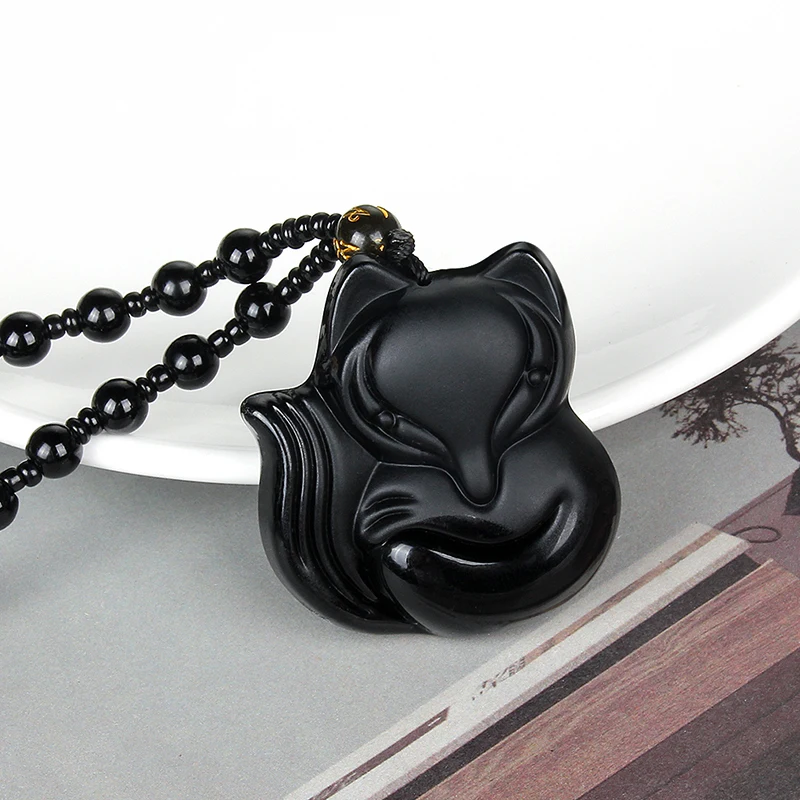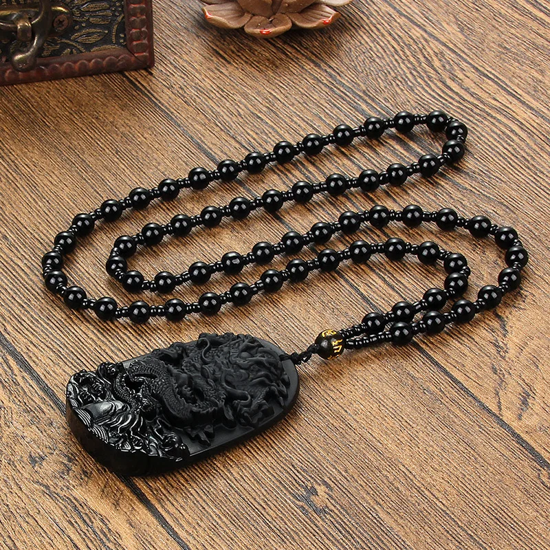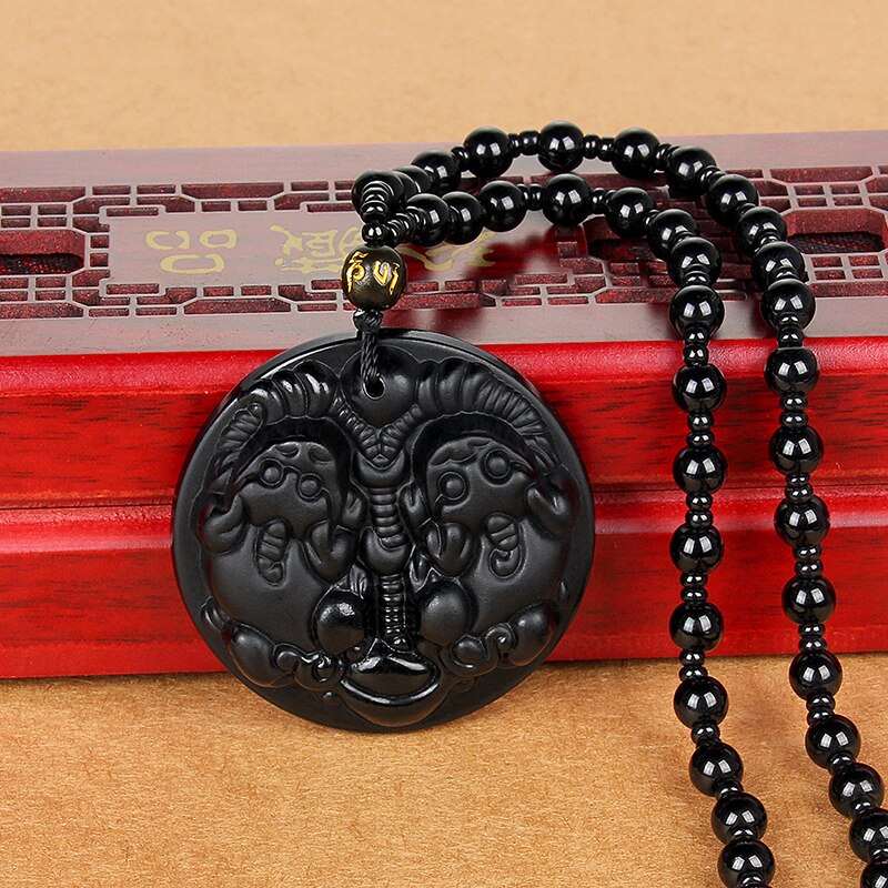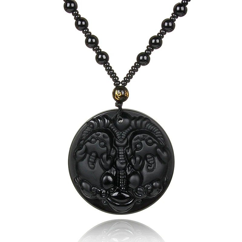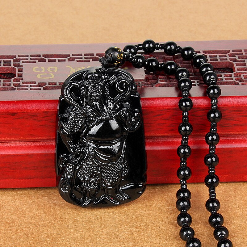 Glass Black Lucky Ruyi Guan Gong Buddha Dragon Sheep Stones Pendant Necklace Joker Sweater Chain Necklace Jewelry Gifts