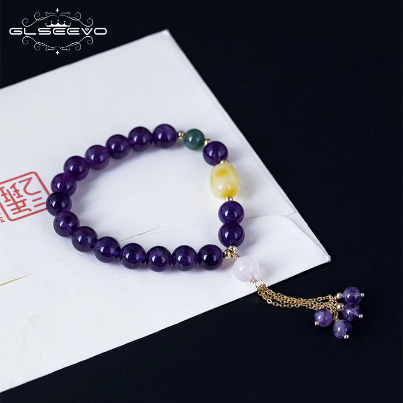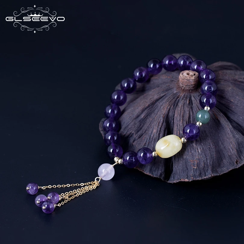 925 Sterling Silver Natural Stone Amethyst Beeswax Adjustable Luxury Women Bracelets Fine Jewellery Bileklik GB0069
