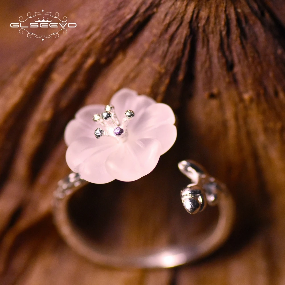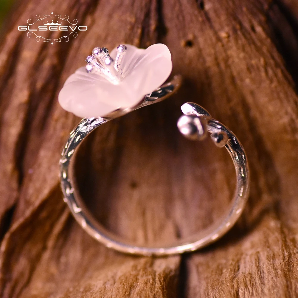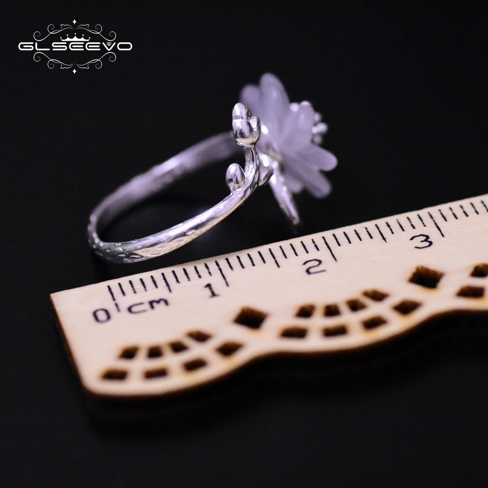 Real 925 Seerling Silver Adjustable Ring For Women Handmade Natural Crystal Flower Open Ring Gift Fine Jewelry GR0006