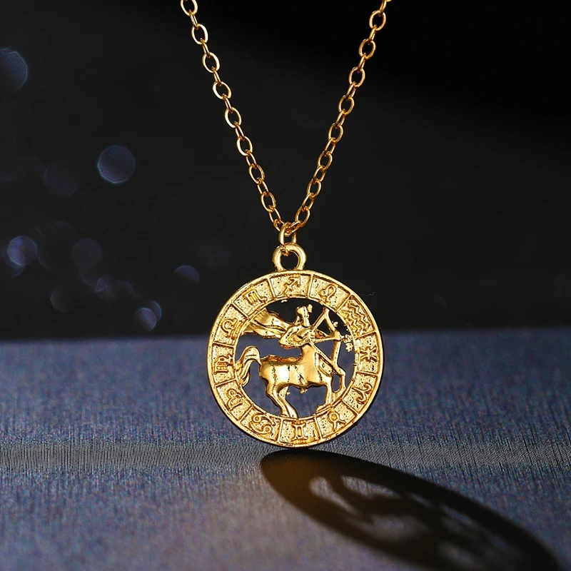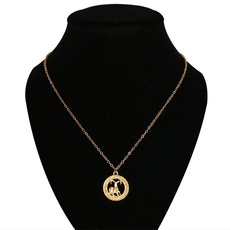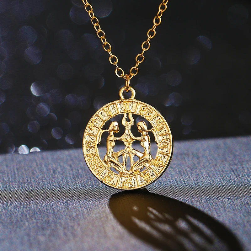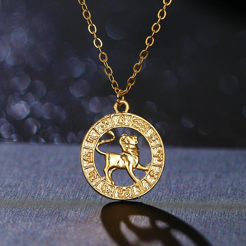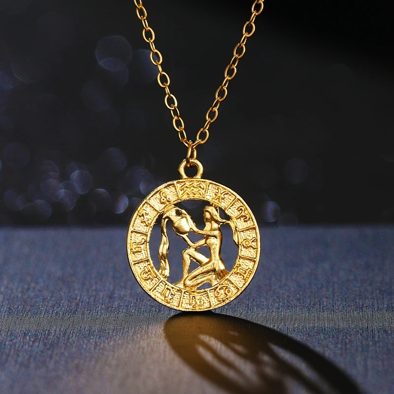 Gold Color 12 Horoscope Zodiac Sign Pendant Necklace For Women Men Constellations Jewelry Gift Dropship