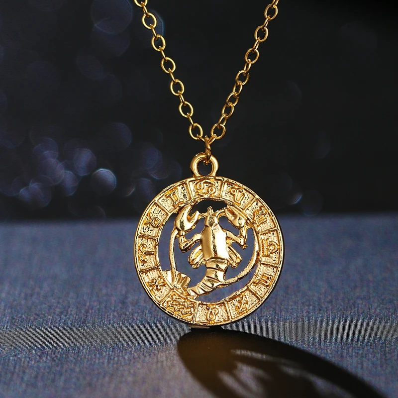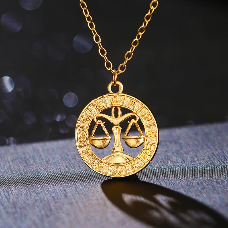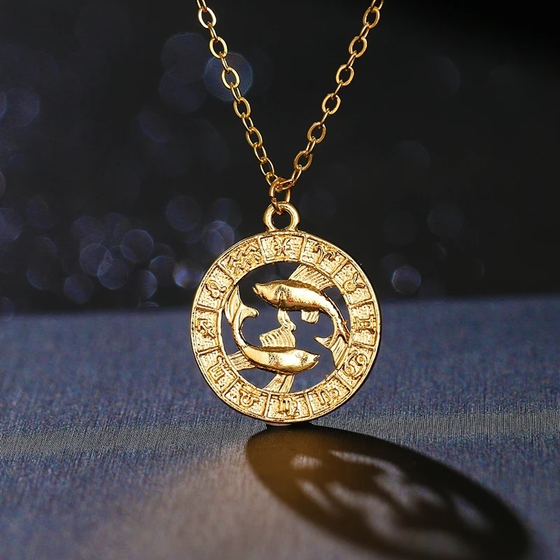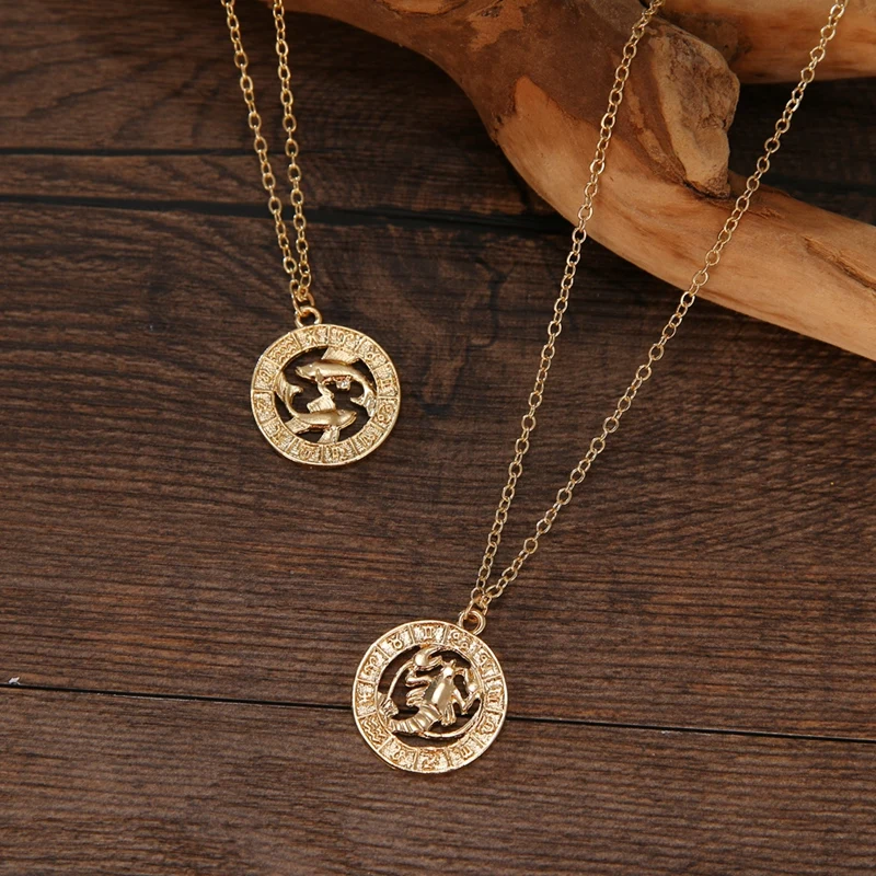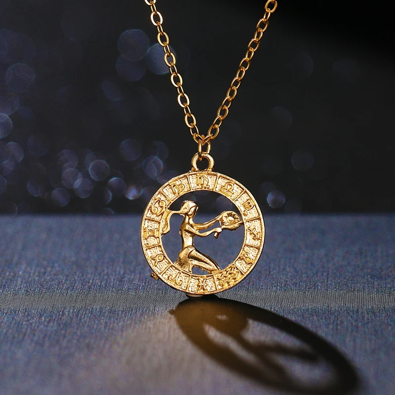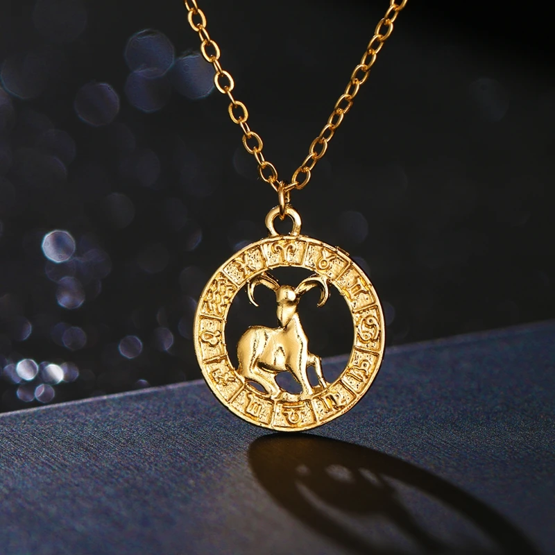 Gold Color 12 Horoscope Zodiac Sign Pendant Necklace For Women Men Constellations Jewelry Gift Dropship