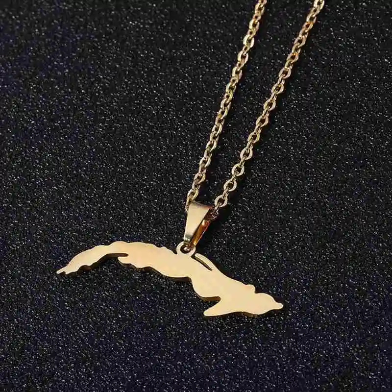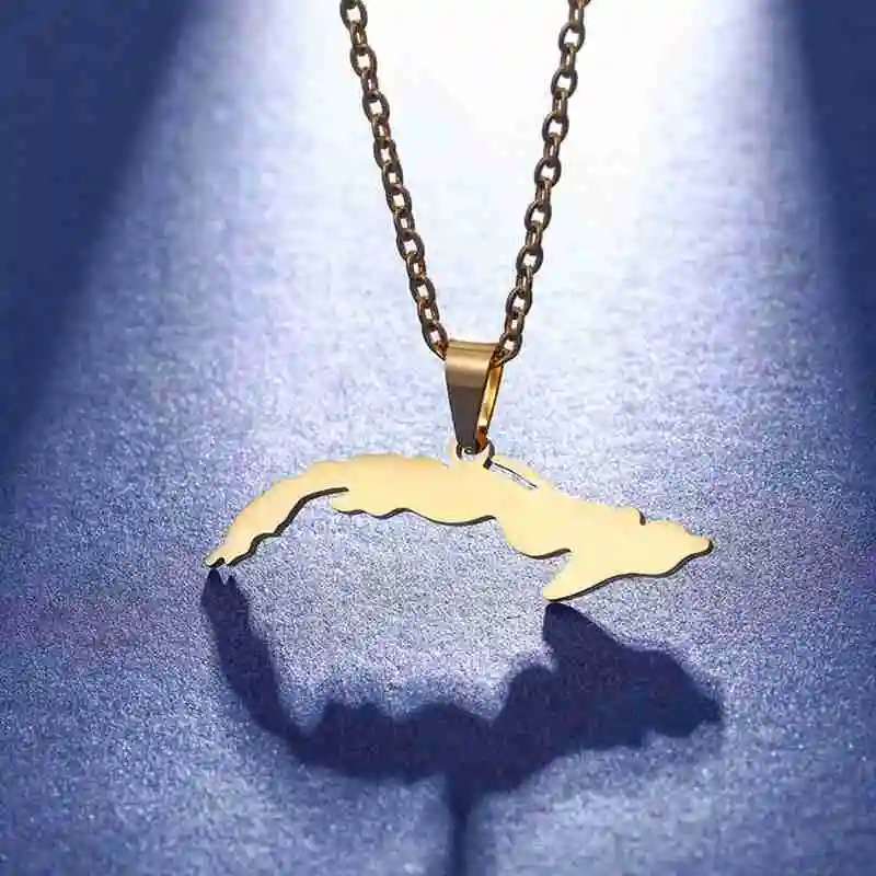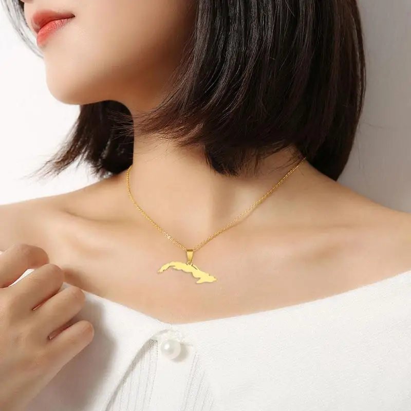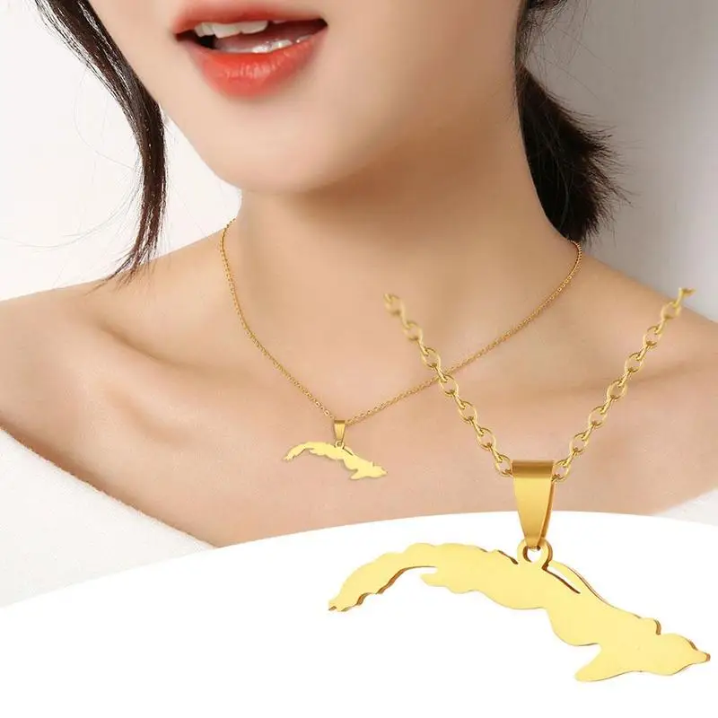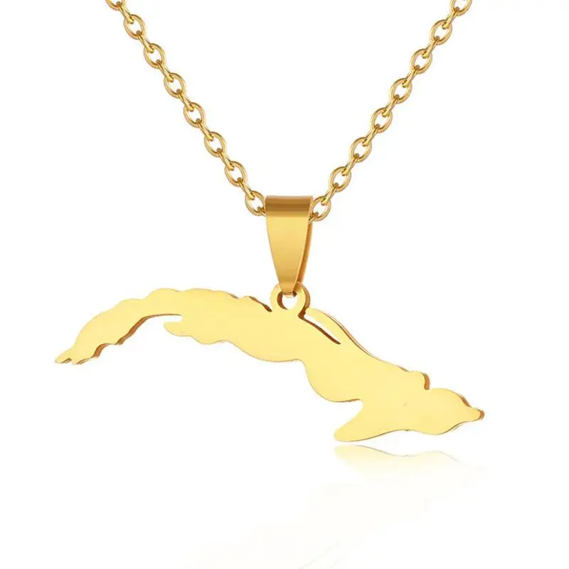 Gold Color Small Size Map Jewelry Steel Cuba Necklaces Map For Women Pendant Anniversary Gift