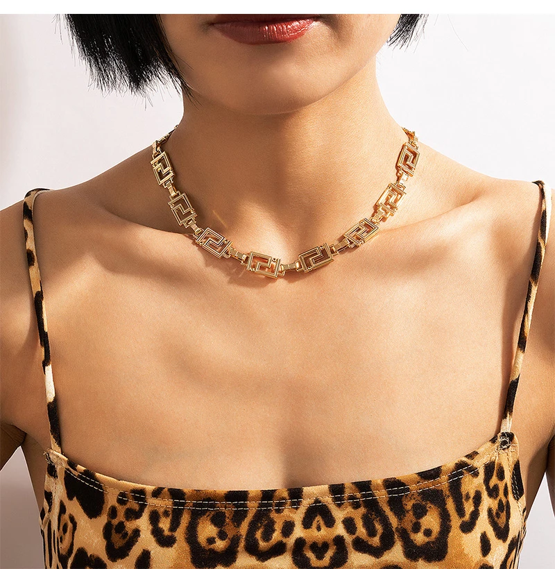 Gold Maze Chain Choker Necklaces for Women Punk Personality Chockers Vintage Exaggerated Single Layer Collare Jewelry Gifts 1 Pc
