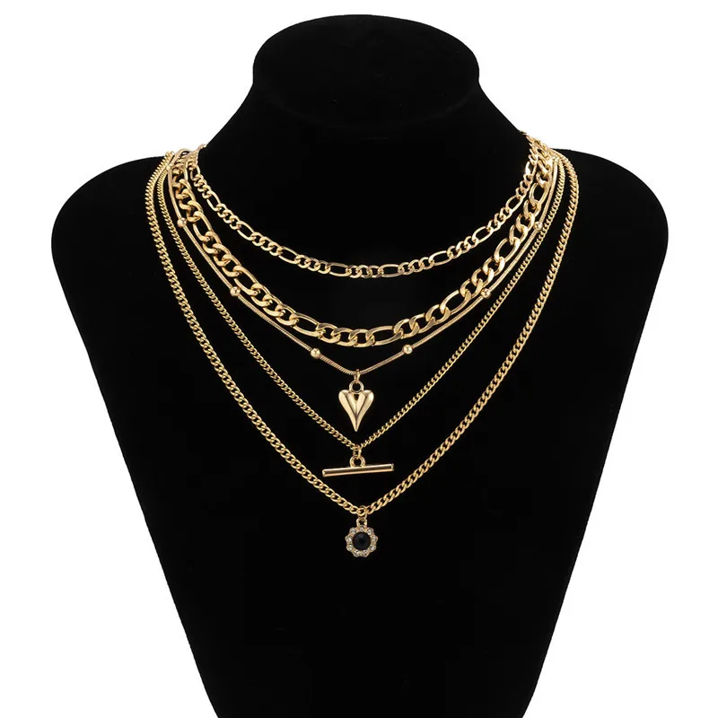Gold Multi-Layer Chunky Necklaces For Women 2021 Hip Hop Chains Jewelry Statement Necklace For Sister Lady Accessories Gift