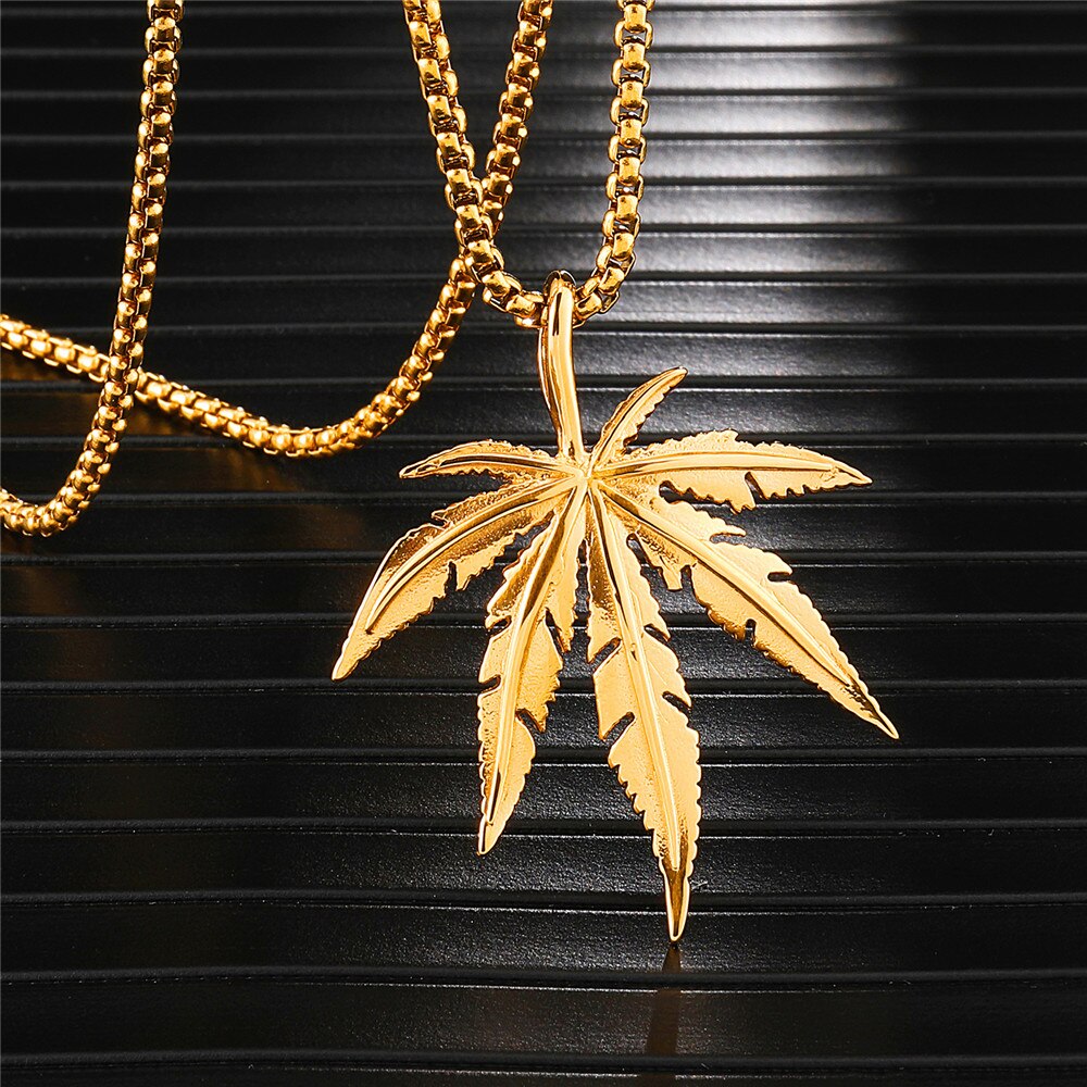 Gold Silver Plated Cannabiss Small Weed Herb Charm Necklace Maple Leaf Pendant Necklace Hip Hop Jewelry