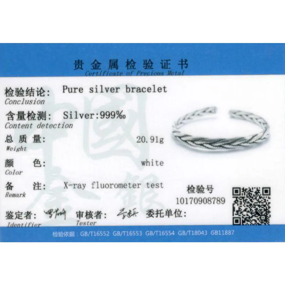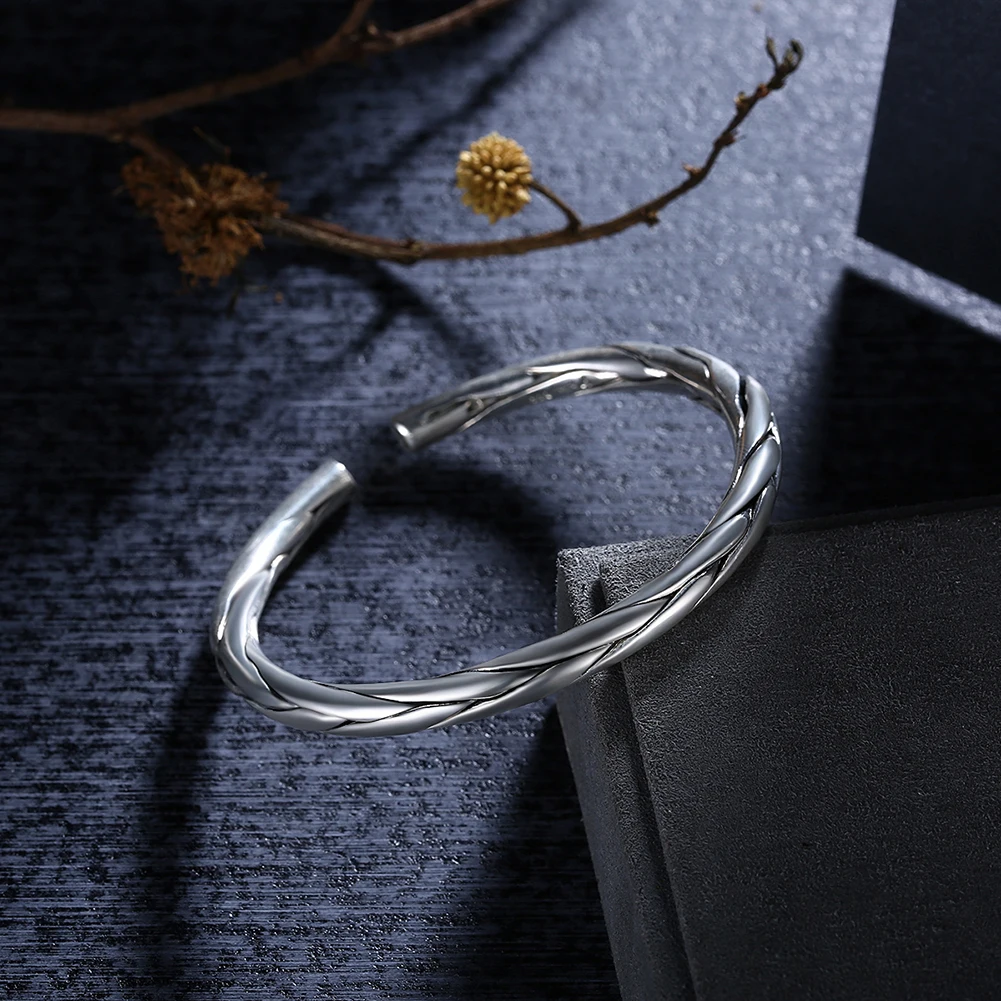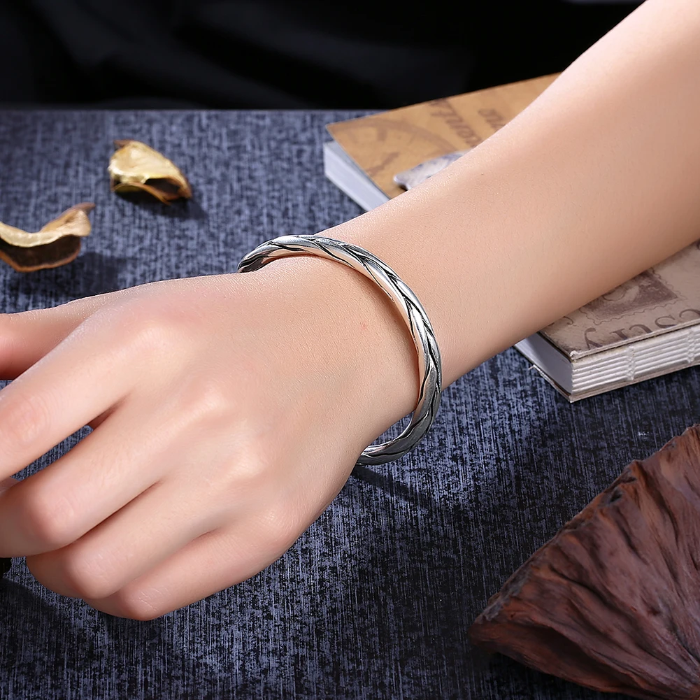 999 Sterling Silver Bracelets Bangles Female Open Bangles Luxury Fine Jewelry Classic Vintage Pulseira Gift for Women