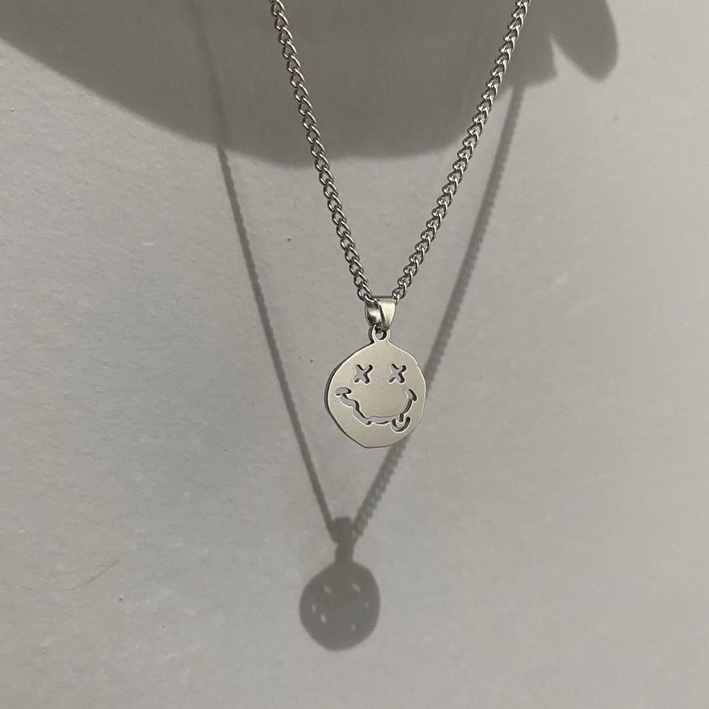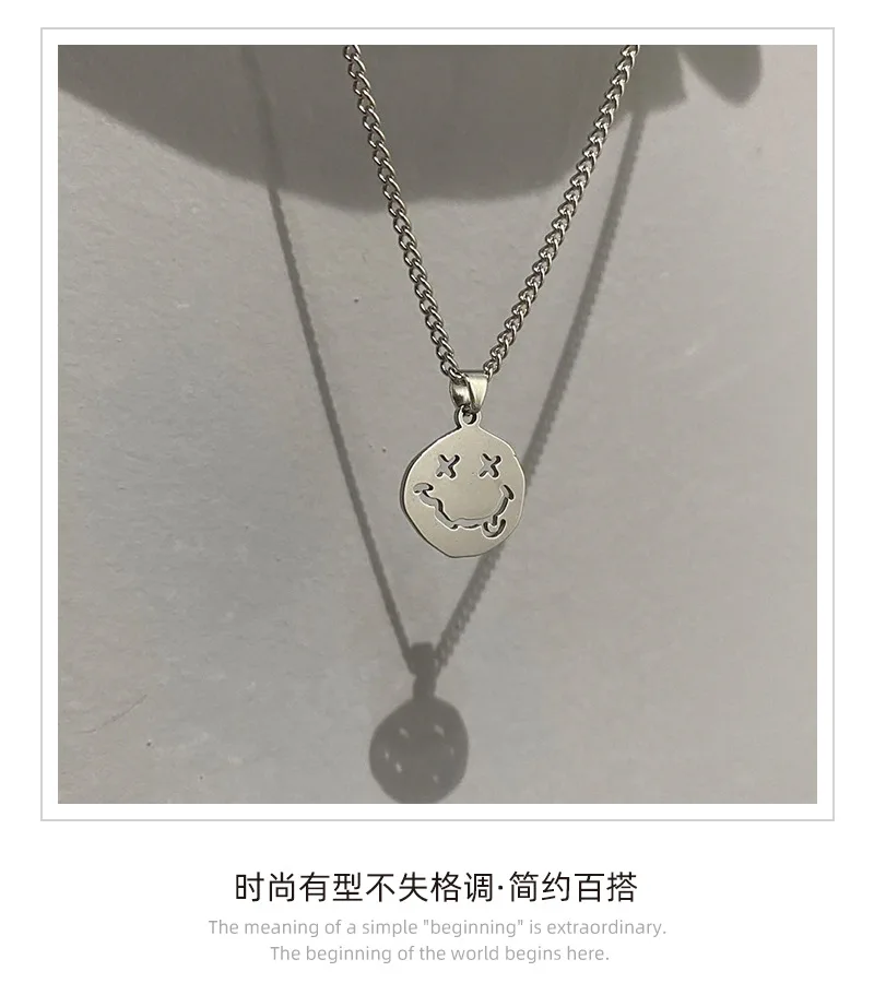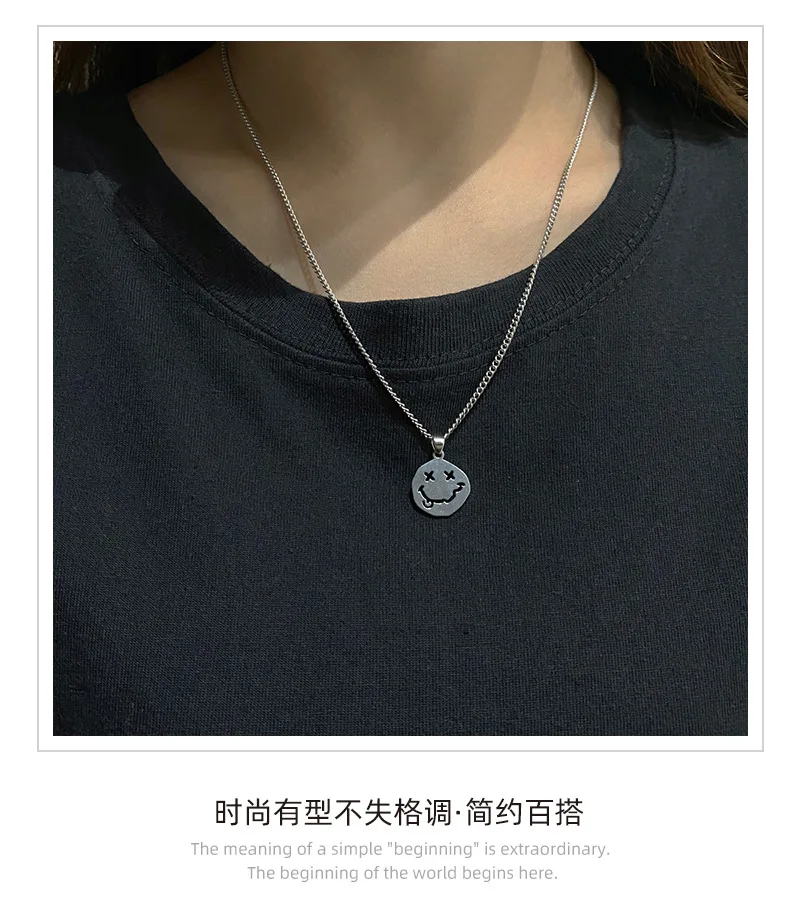 Goth Hiphop/Rock Metal Geometry Circular Smile-Face Chain Necklace for Boys Girl Grunge Indie Igirl Collar Aesthetic Accessories