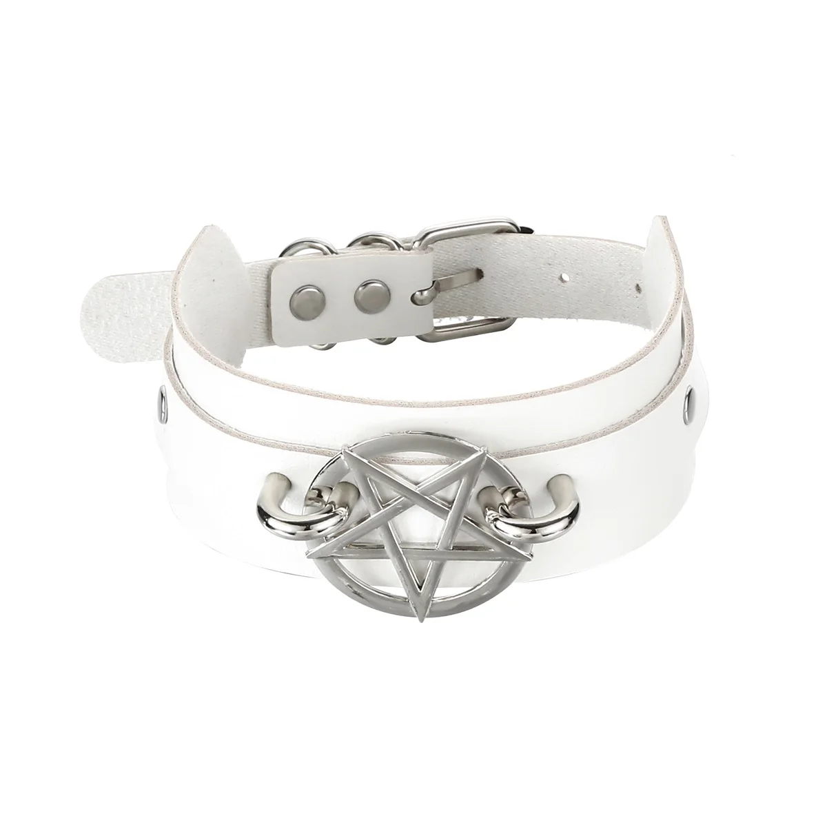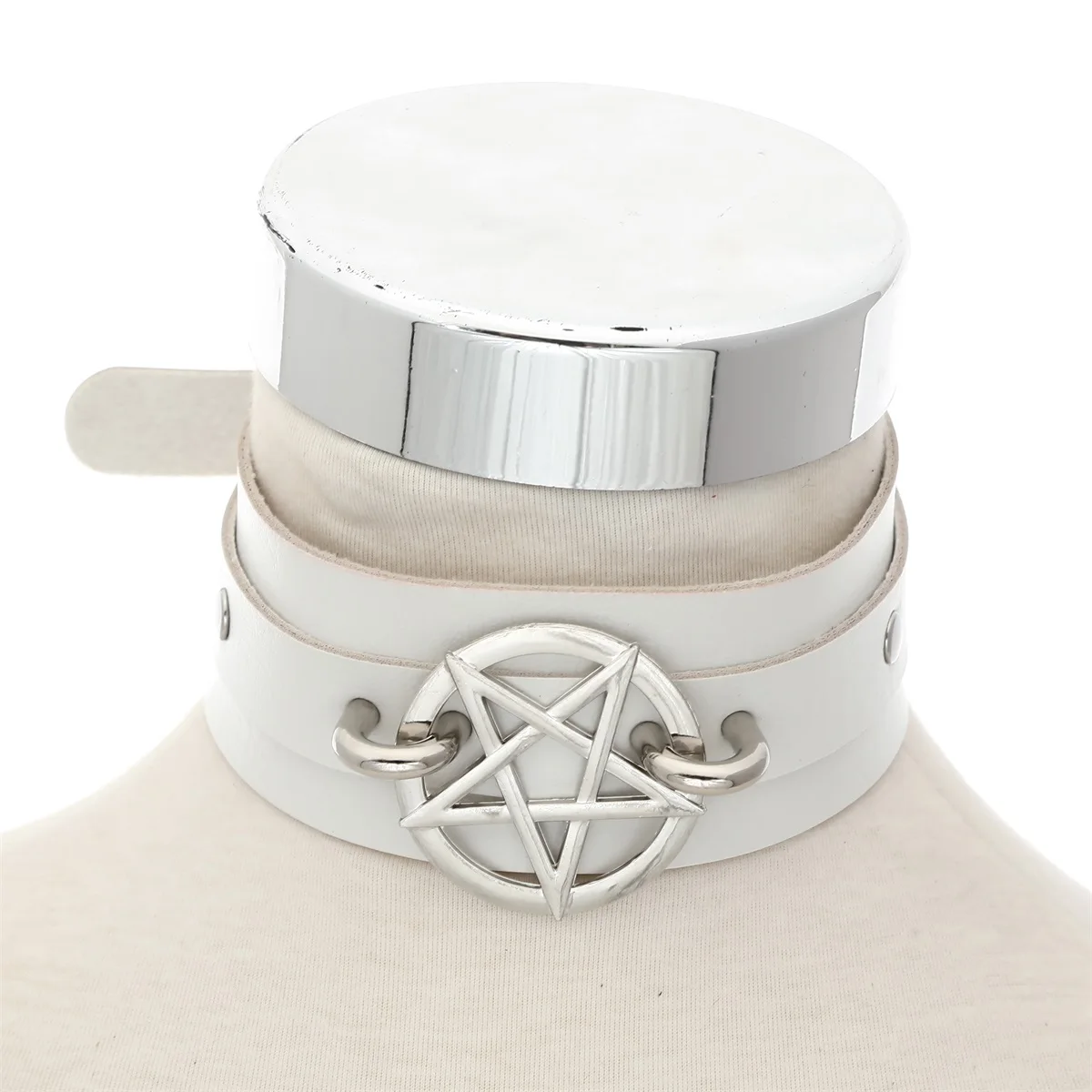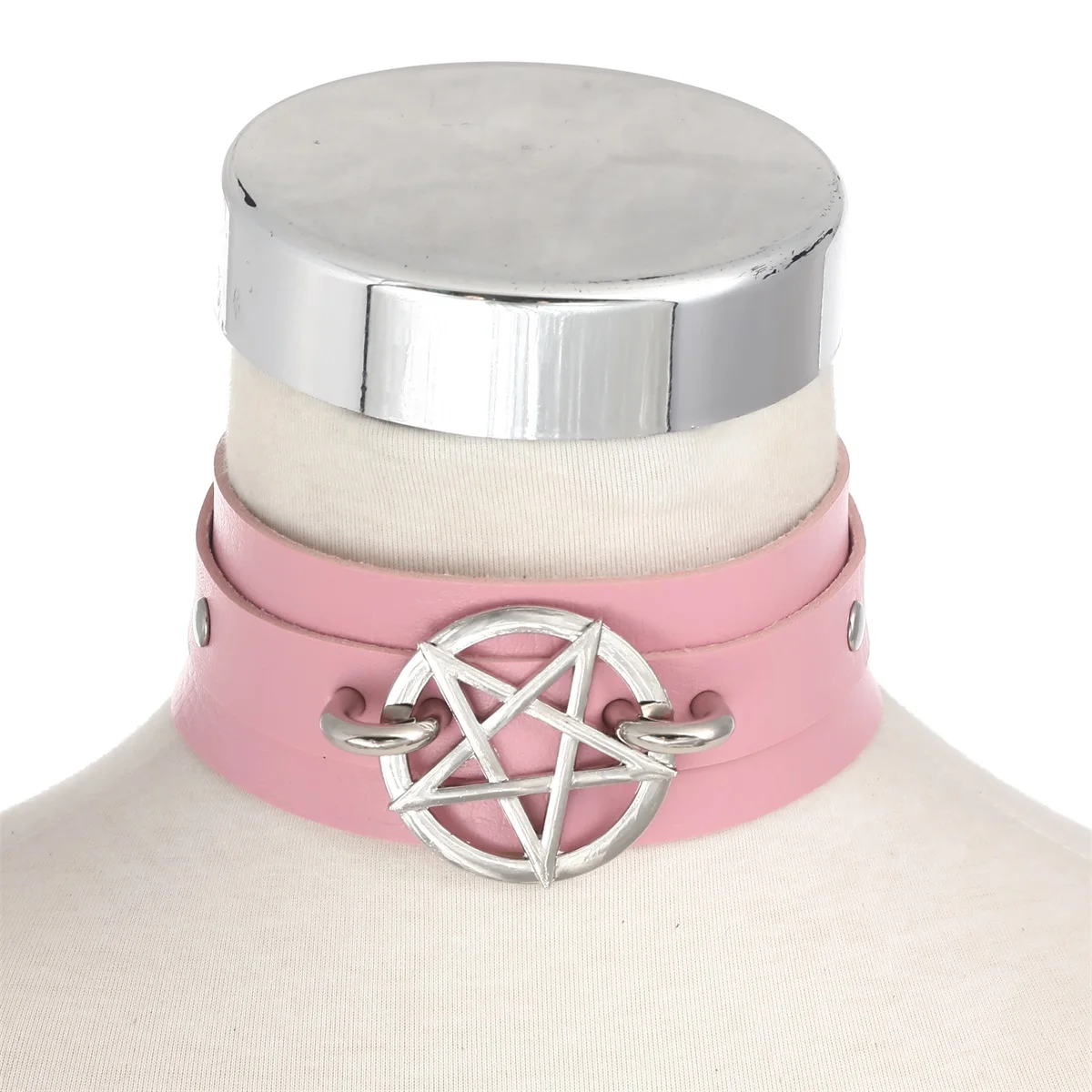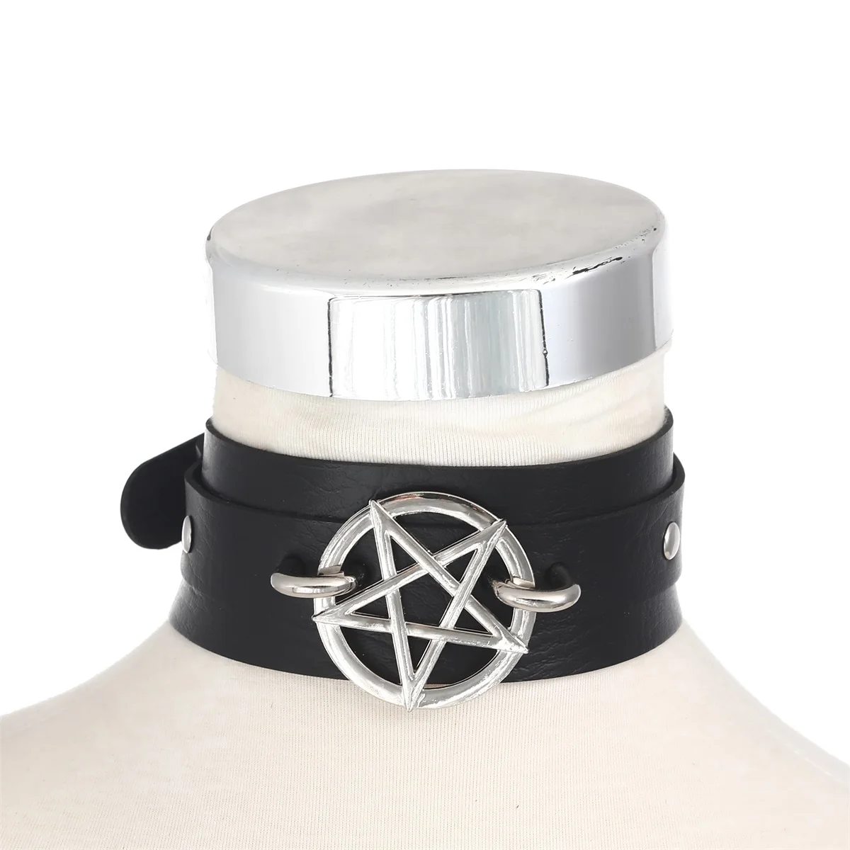 Goth Pentagram Necklace Star Choker Collar Black Pu Leather Gothic Accessories Woman Witch Cosplay Jewelry