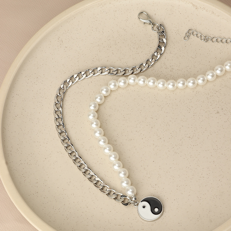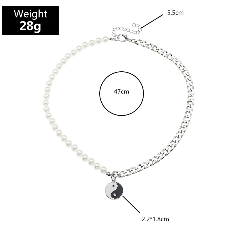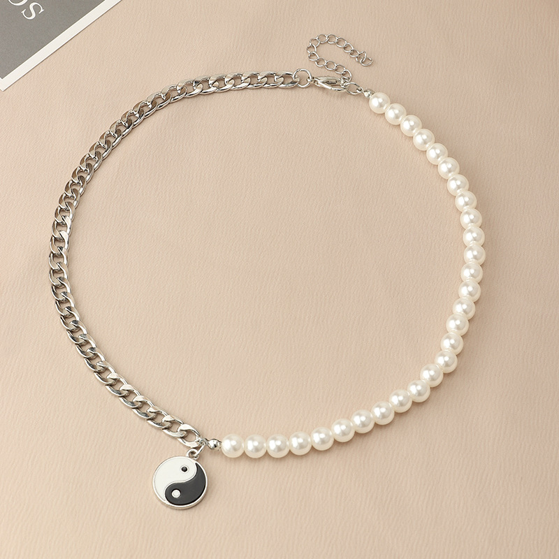 Goth Tai Chi Gossip Yin Yang Necklace for Women Beads Punk Vintage Pearl Necklace Charms Y2K Jewelry 90s Aesthetic Gifts