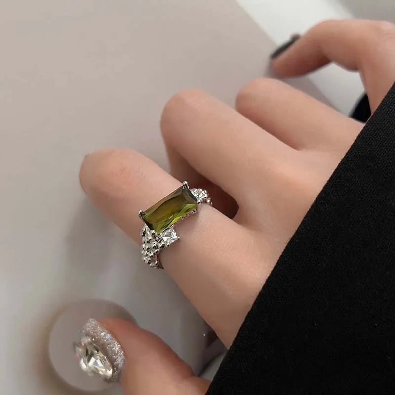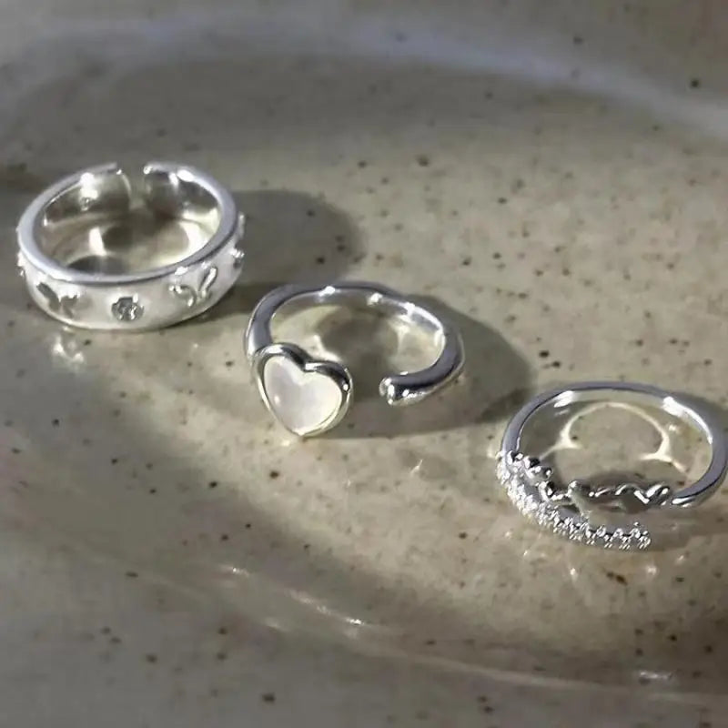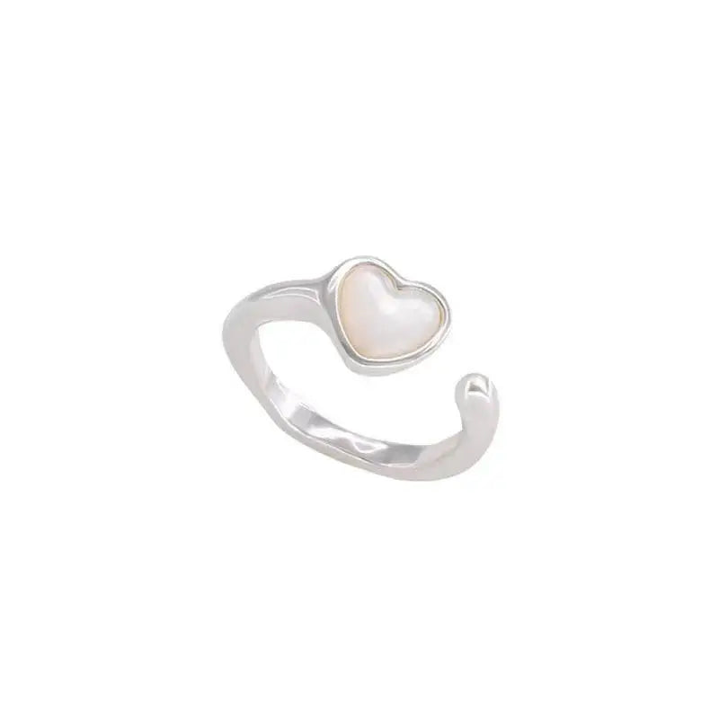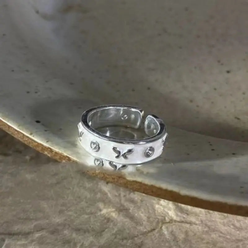 Gothic Aesthetic White Enamel Butterfly Open Ring Punk Irregular Opal Heart Rings for Women Jewelry Y2K Emo Grunge Accessories