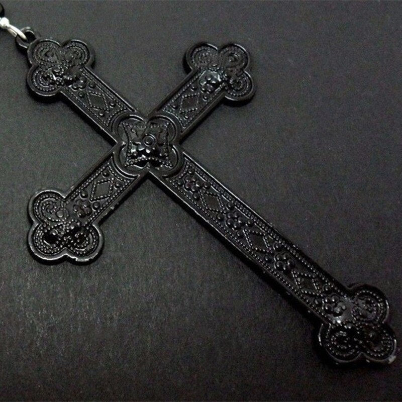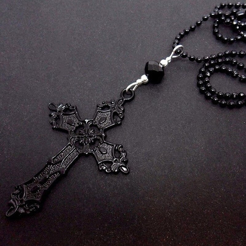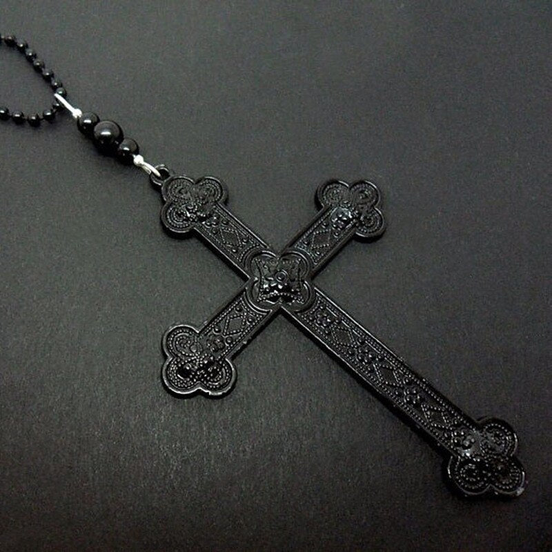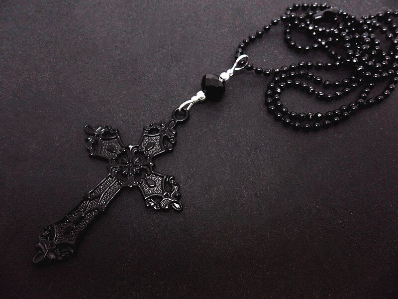 Gothic Black Cross Black Ball Chain Pendant Necklace Witchy Alternative Goth Witchy Punk Statement Gorgeous Jewelry Women Gift