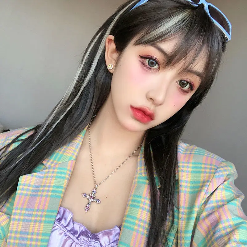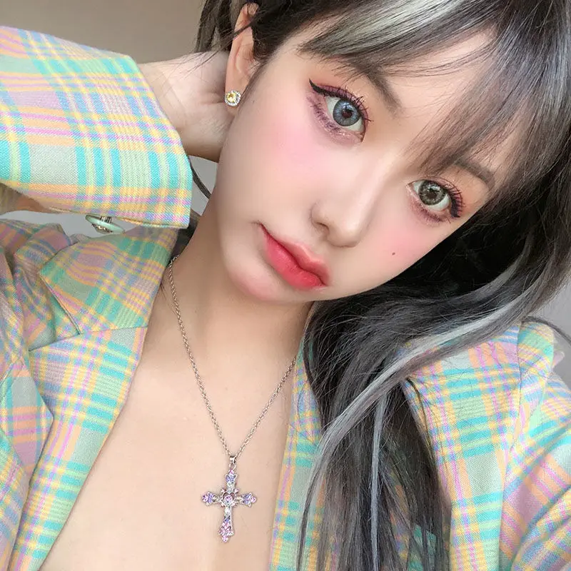 Gothic Cross Necklace Pink Purple Zircon Punk Pendant Necklace Vintage Y2K Heart Cross Chain Necklace for Woman Jewelry