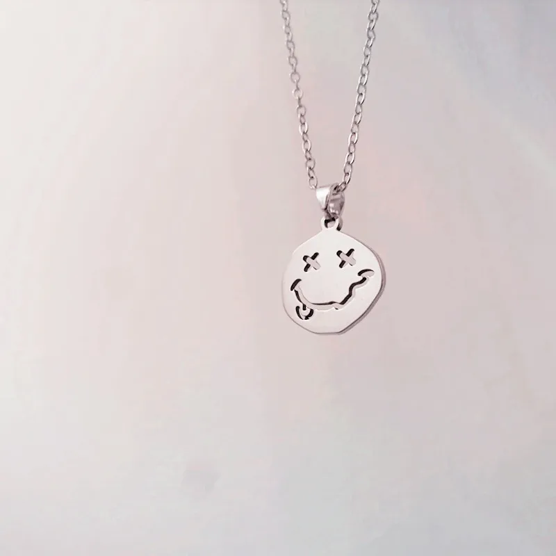 Gothic Style Smile Face Neck Pendant Women Men Long Chain Goth Necklace Couple Jewelry 2021 Cool Streetwear Kpop Collar For Girl