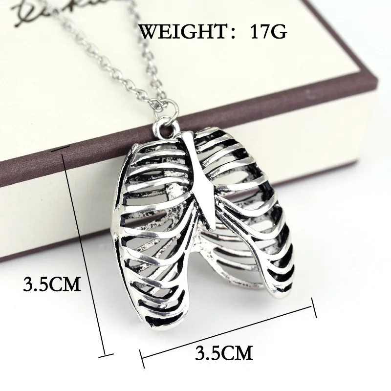 Gothic Vintage Bone Necklace Anatomical Skeleton Heart Goth Punk Unique Retro Pendant Jewelry for Men/Women 17g