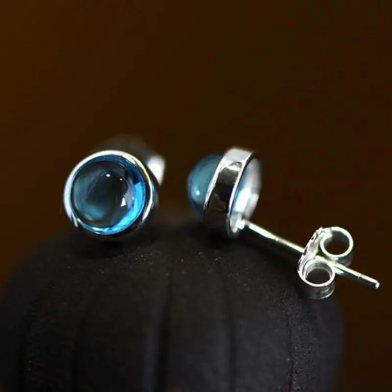 GQTORCH Real 925 Sterling Silver Blue London Topaz Earrings For Women Natural Stone Elegant Simple Design Vintage Brinco Prata