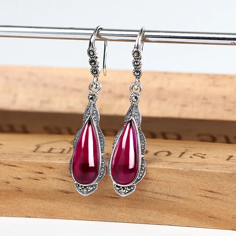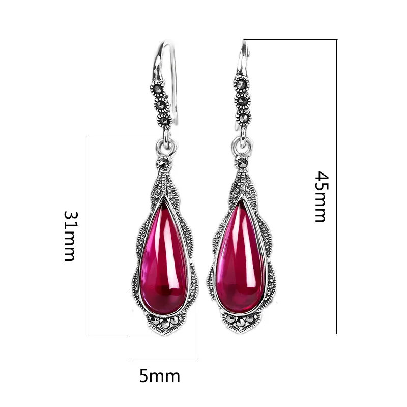 GQTORCH Real 925 Sterling Silver Jewelry Water Drop Shaped Red Ruby Earrings For Women Hooks Earrings 2020