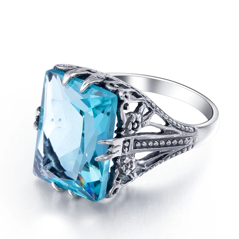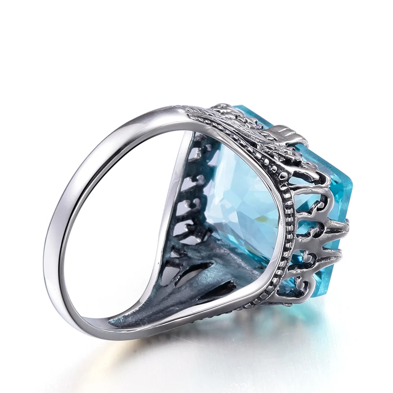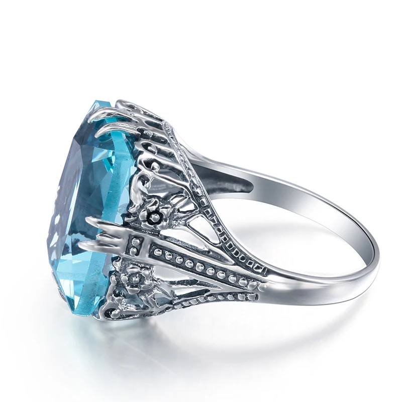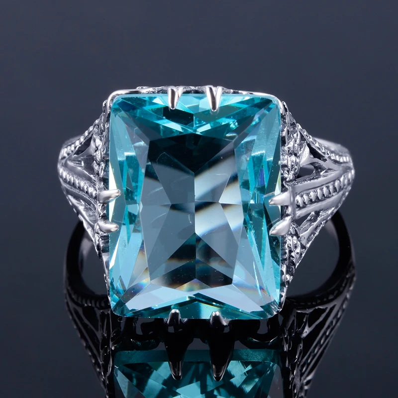Cushion Genuine 925 Sterling Silver Rings For Women 3.4 SquareBlue Aquamarine Ring Fashion Jewelry Valentine's Gift