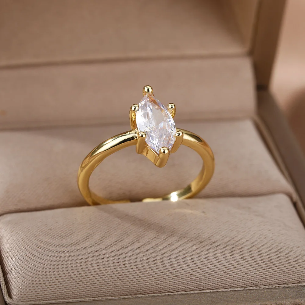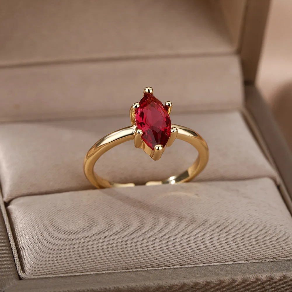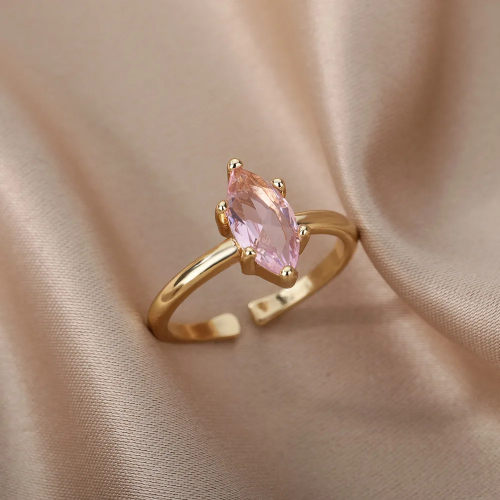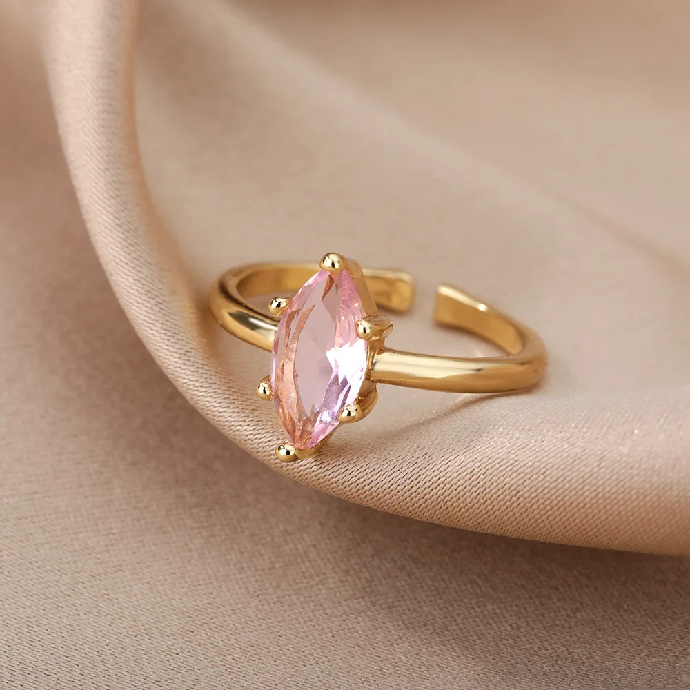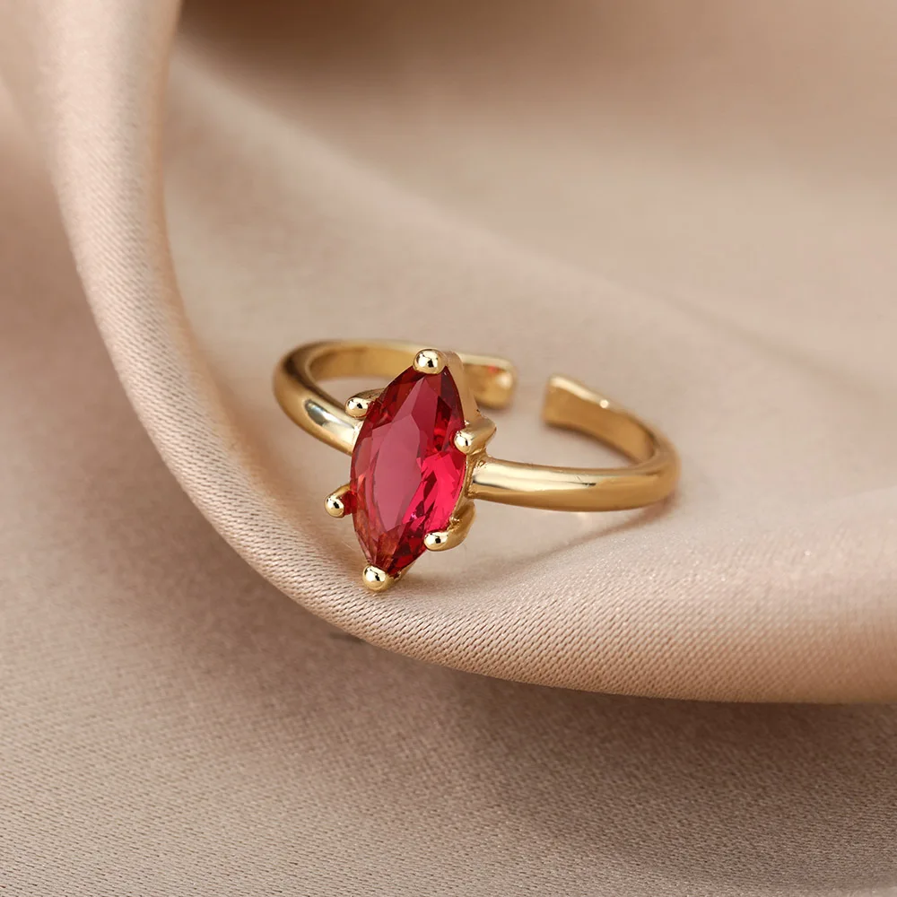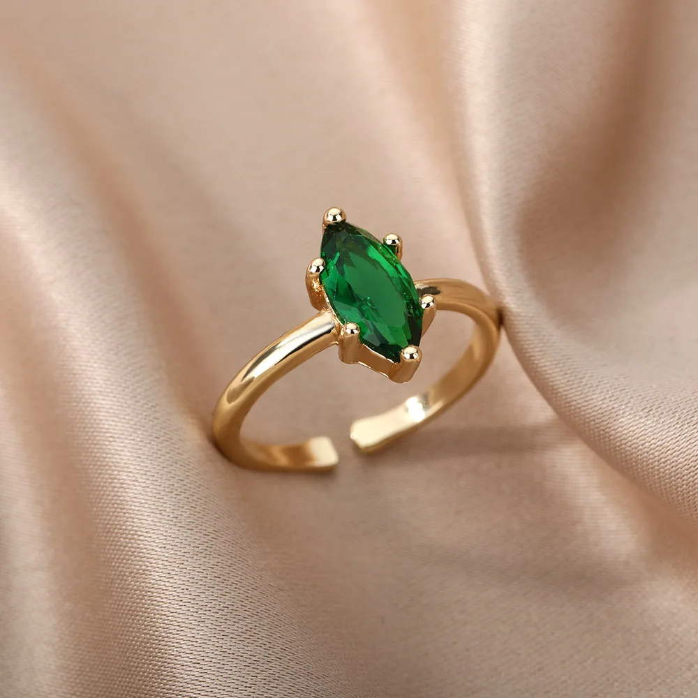 Green Color Zircon Rings For Women Adjustable Open Cubic Zirconia Stainless Steel Finger Ring Couple Wedding Jewelry anillos