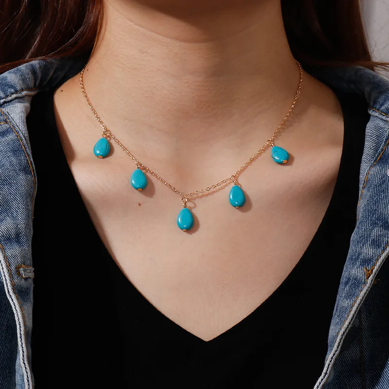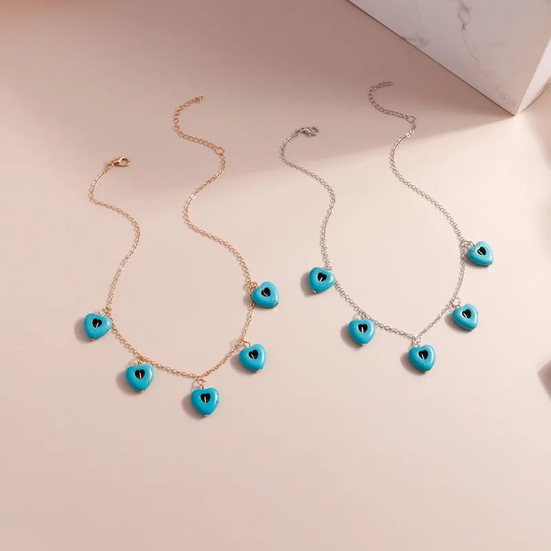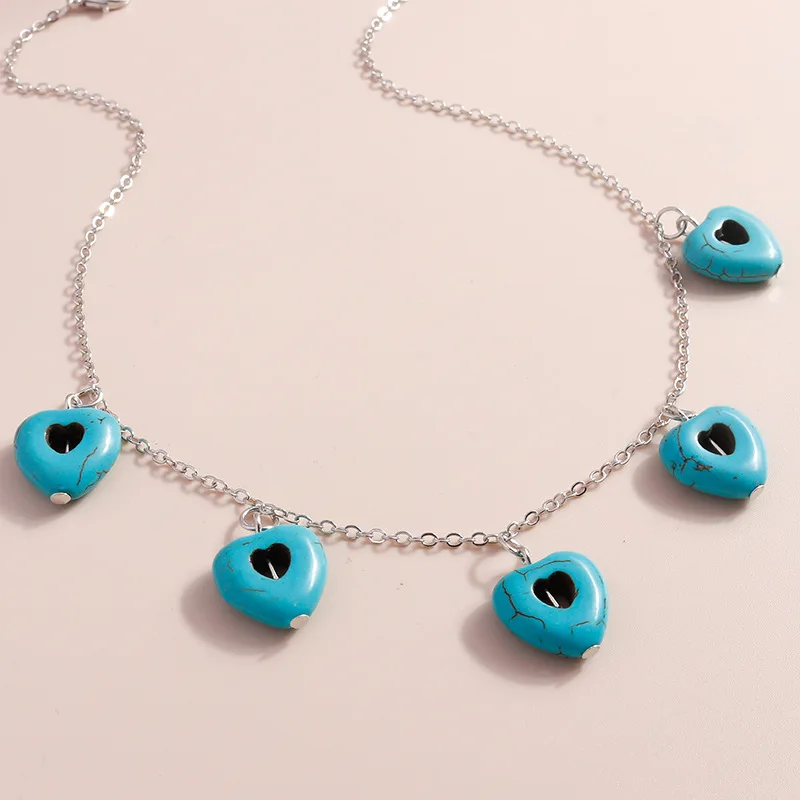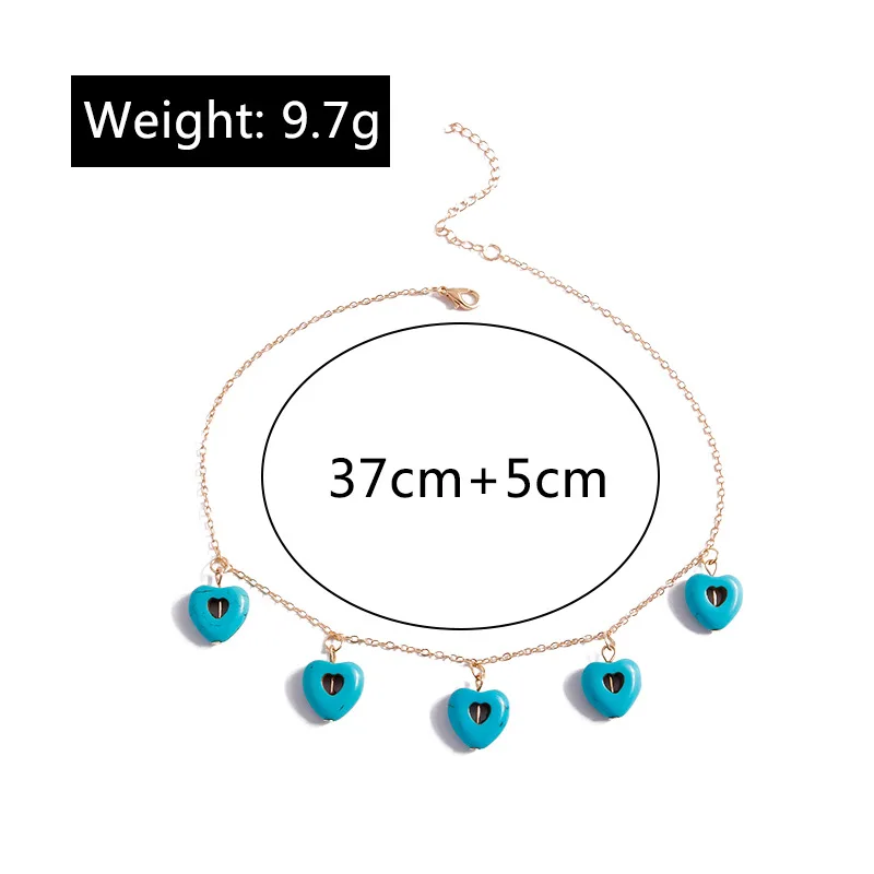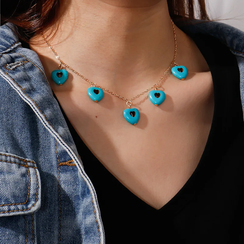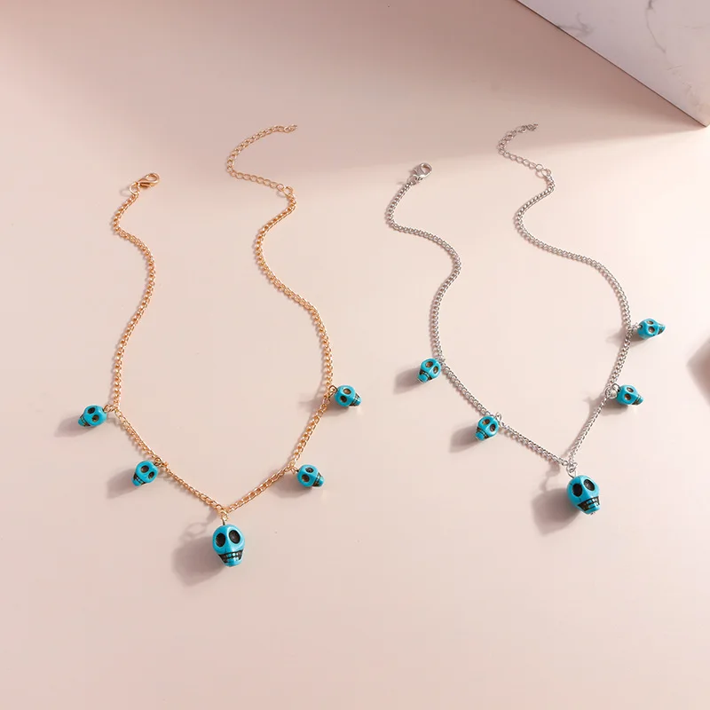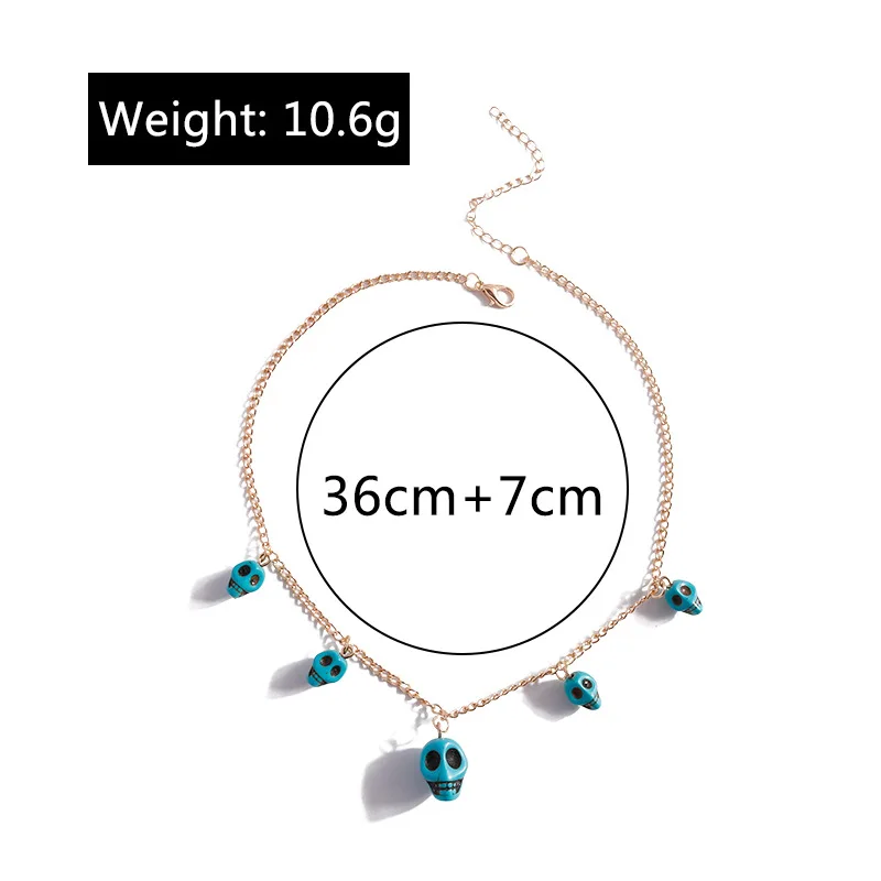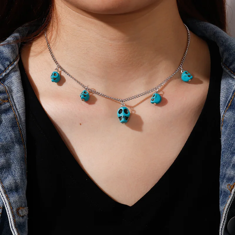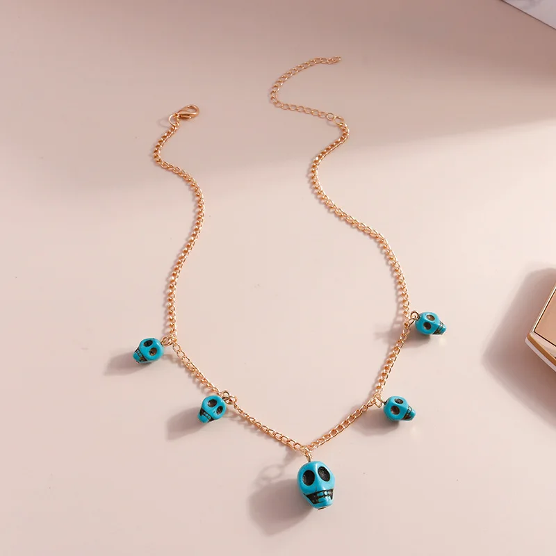 Green Stone Hollow Heart Skull Pendant Charms Statement Gold Necklace for Women Party Clavicle Necklace Jewelry