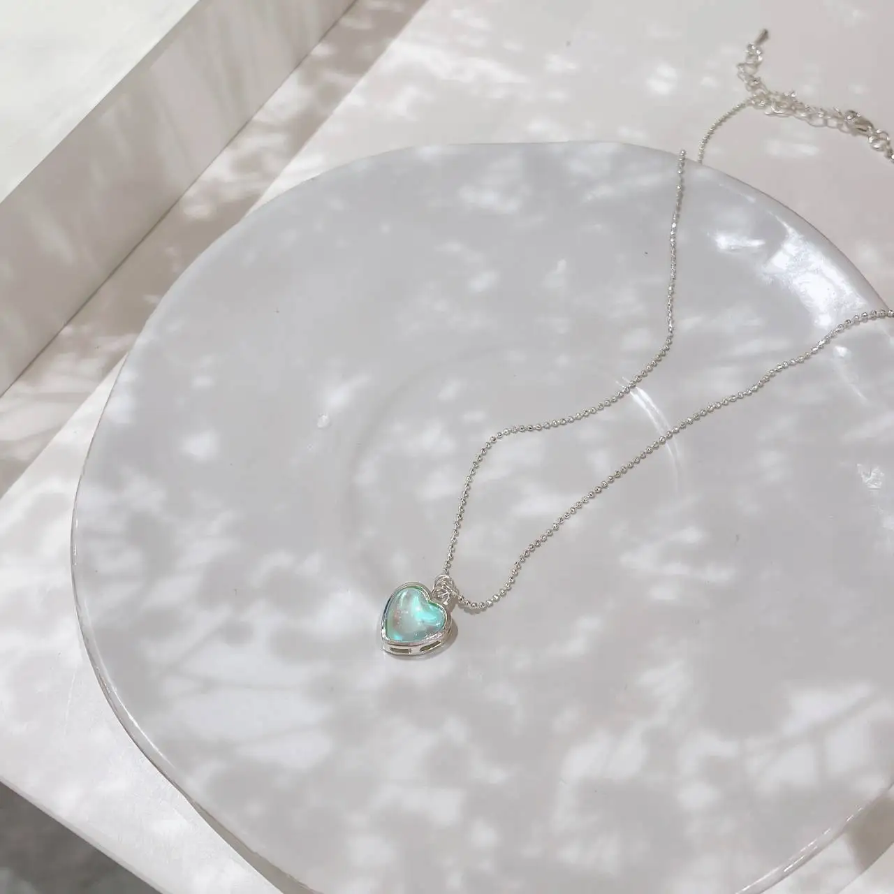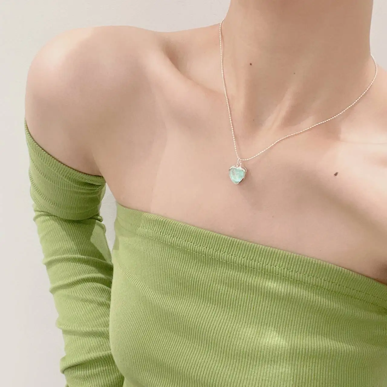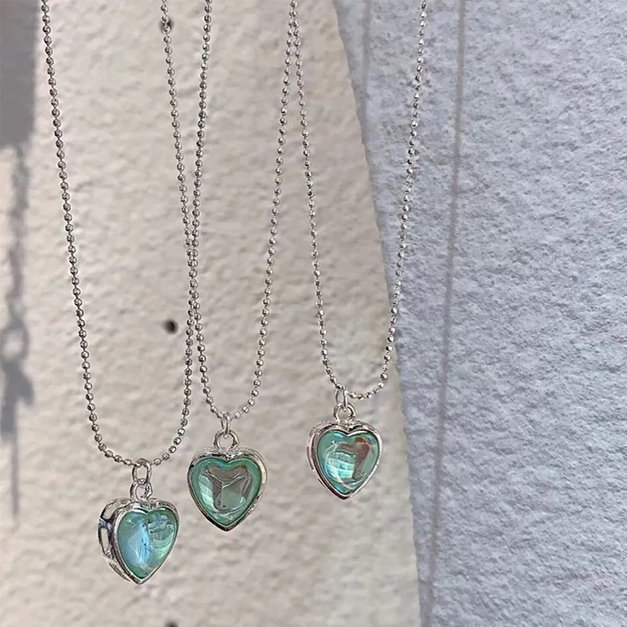 Model Number : Green Transparent Crystal Love Heart Pendant Necklace