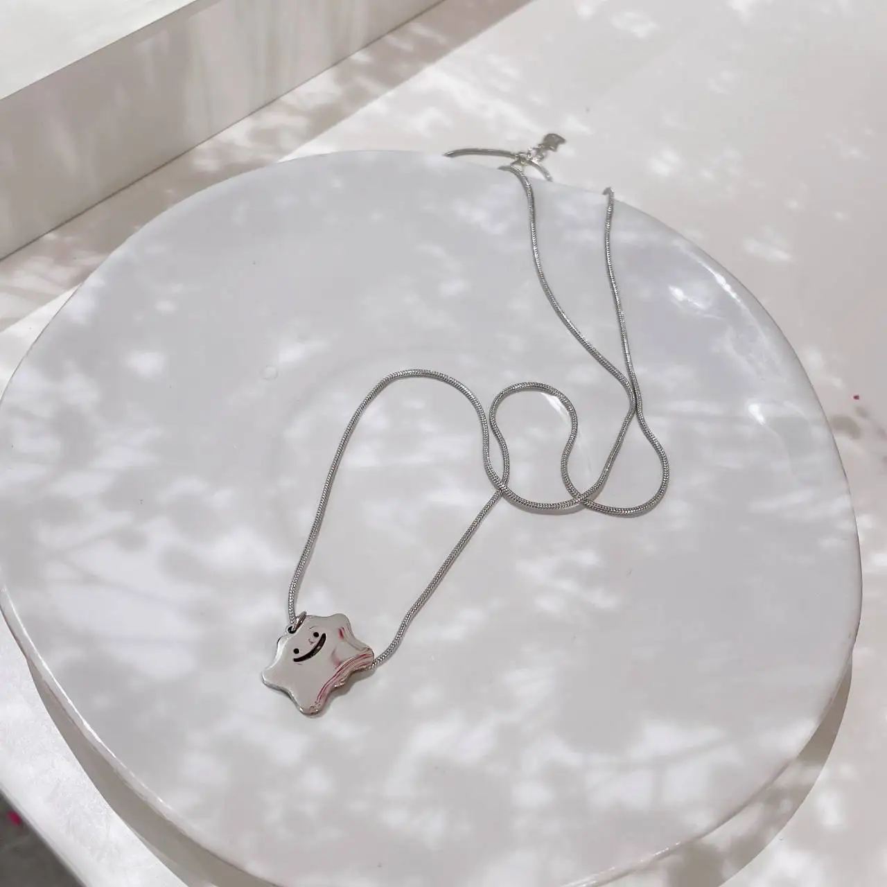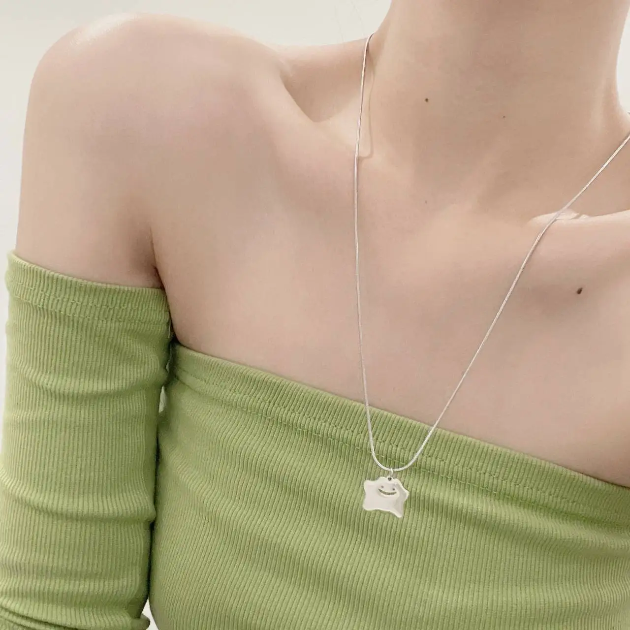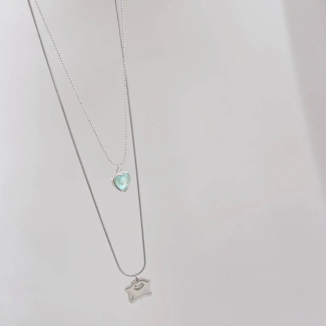 Green Transparent Crystal Love Heart Pendant Necklace Cloud Smiley Necklaces 2022 Trend Vintage Metal Beaded Necklace for Women