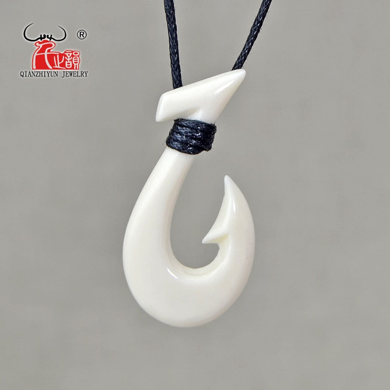 GX002 Handmade Men's Jewelry Primitive tribes Zealand Maori Pendant Yak Bone Fish Hook Choker Womens Necklace for surfing