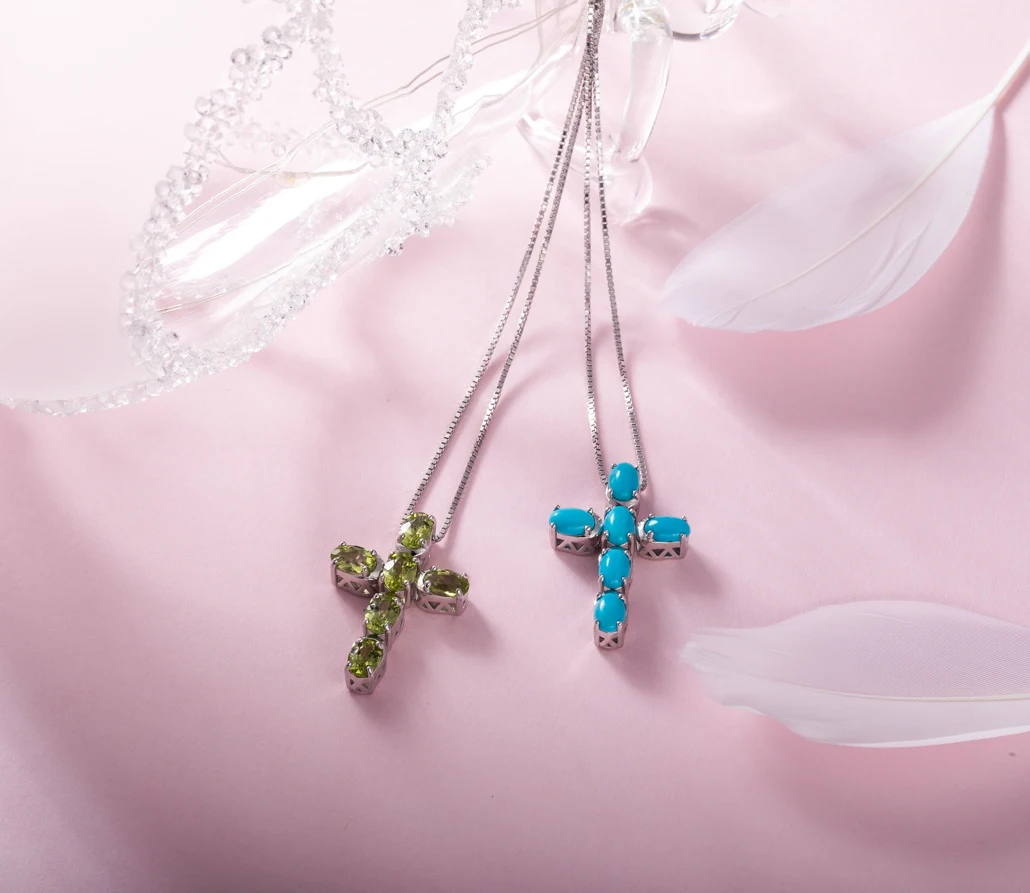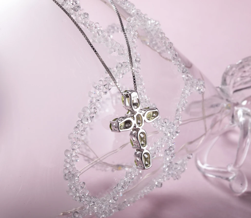 GZ ZONGFA Selling Trendy Jewelry Natural Peridot 925 Sterling Silver Cross Women Wedding Chain Necklace