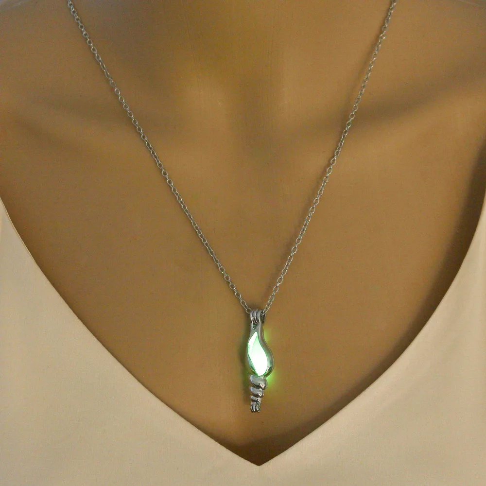 Halloween Jewelry with Silver Color Glow in the Dark Luminous Stone Locket Pendant Choker Necklace for Men Women Gift
