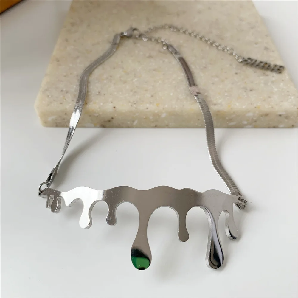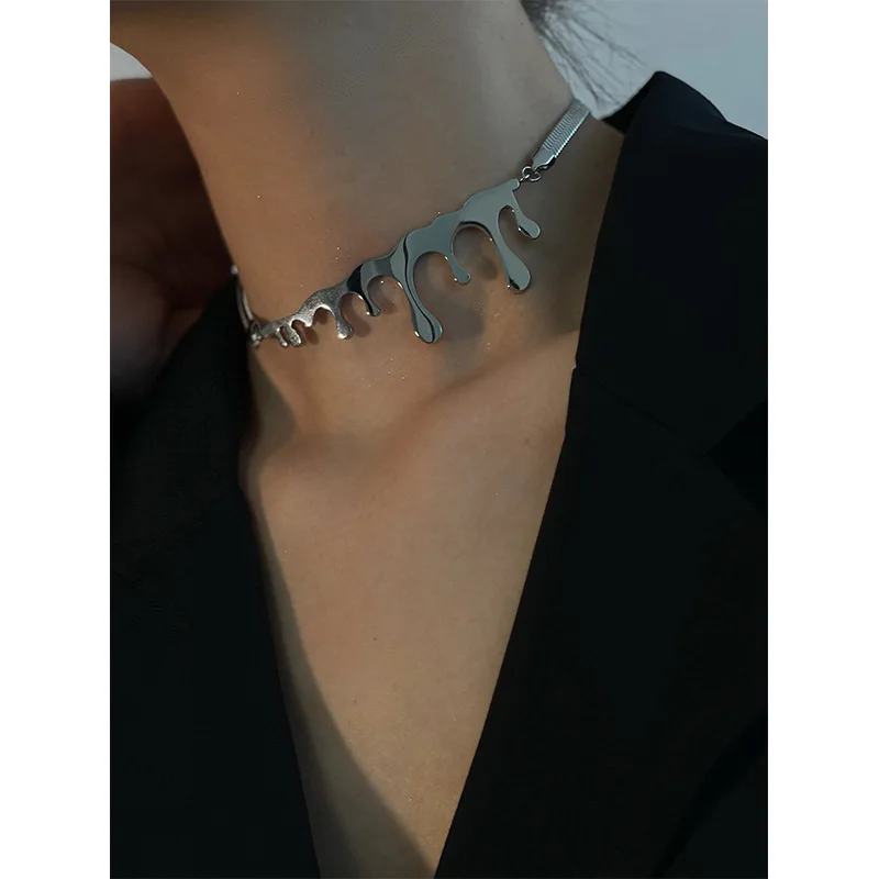 Halloween Punk Hip Hop Metal Liquid Quicksand Blood Flow Shape Chokers Necklace 2021 Trend Jewelry for Women Goth Neck Chains