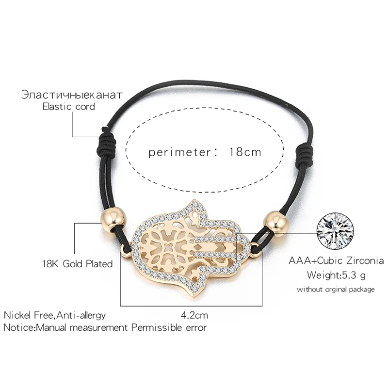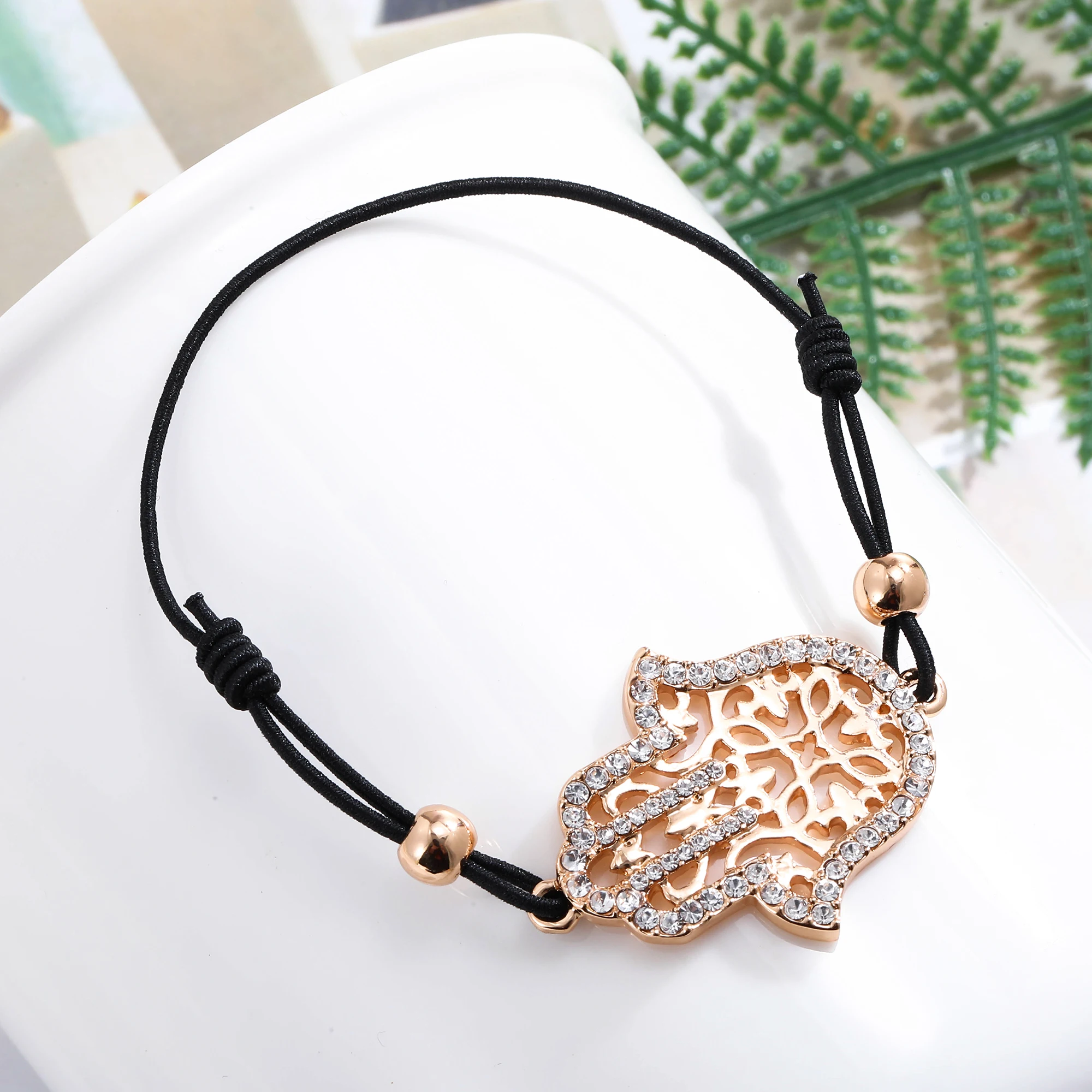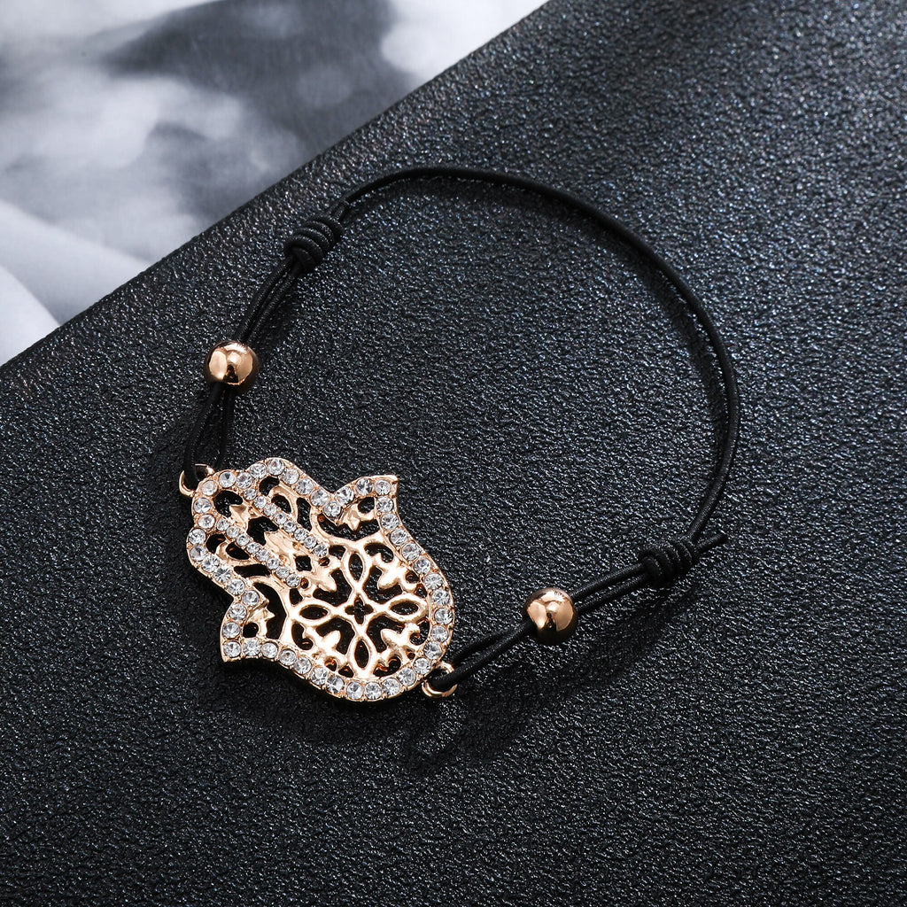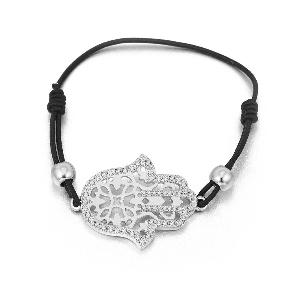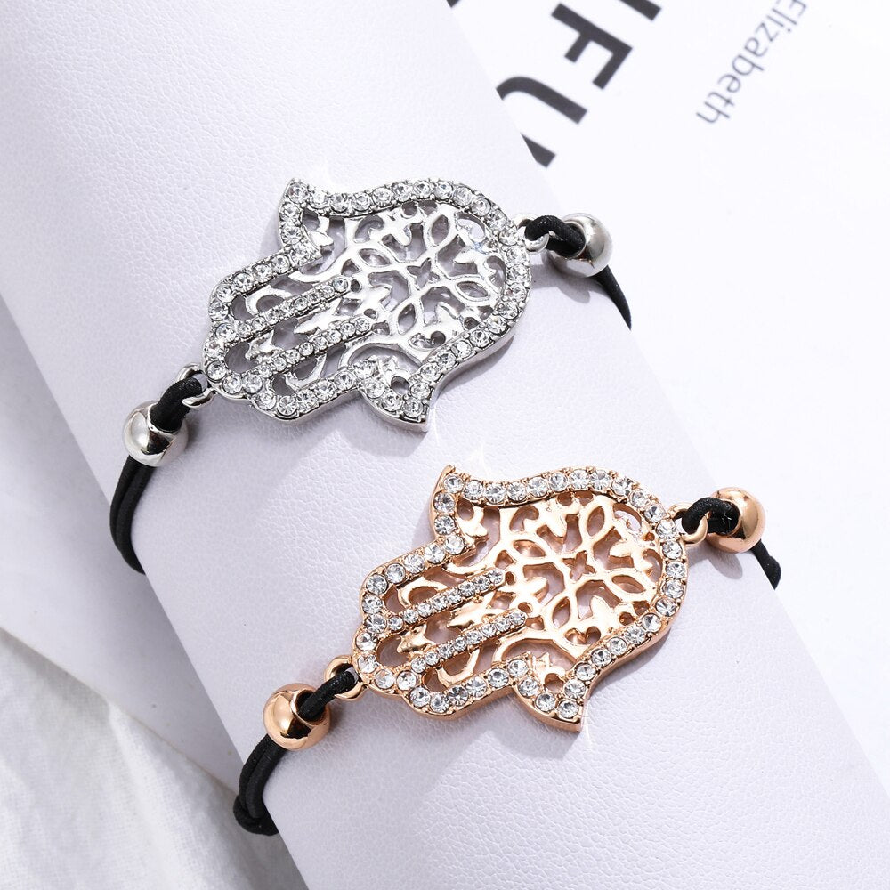 Hand Hamsa Fatima Bracelet Gold Silvery Crystal Pendant Hollow Rope Women Bracelets Leather Buddhism Jewelry Women Accessorie