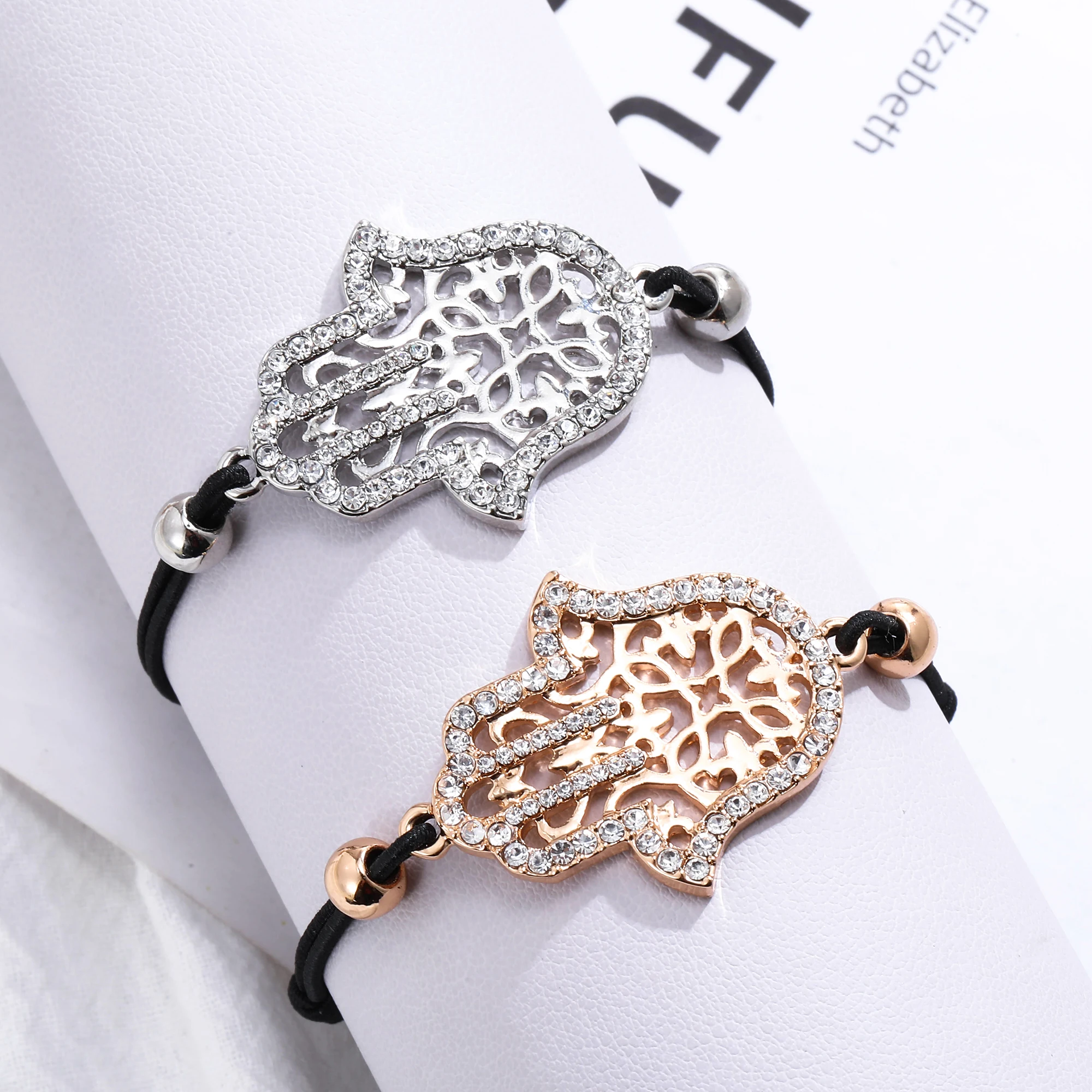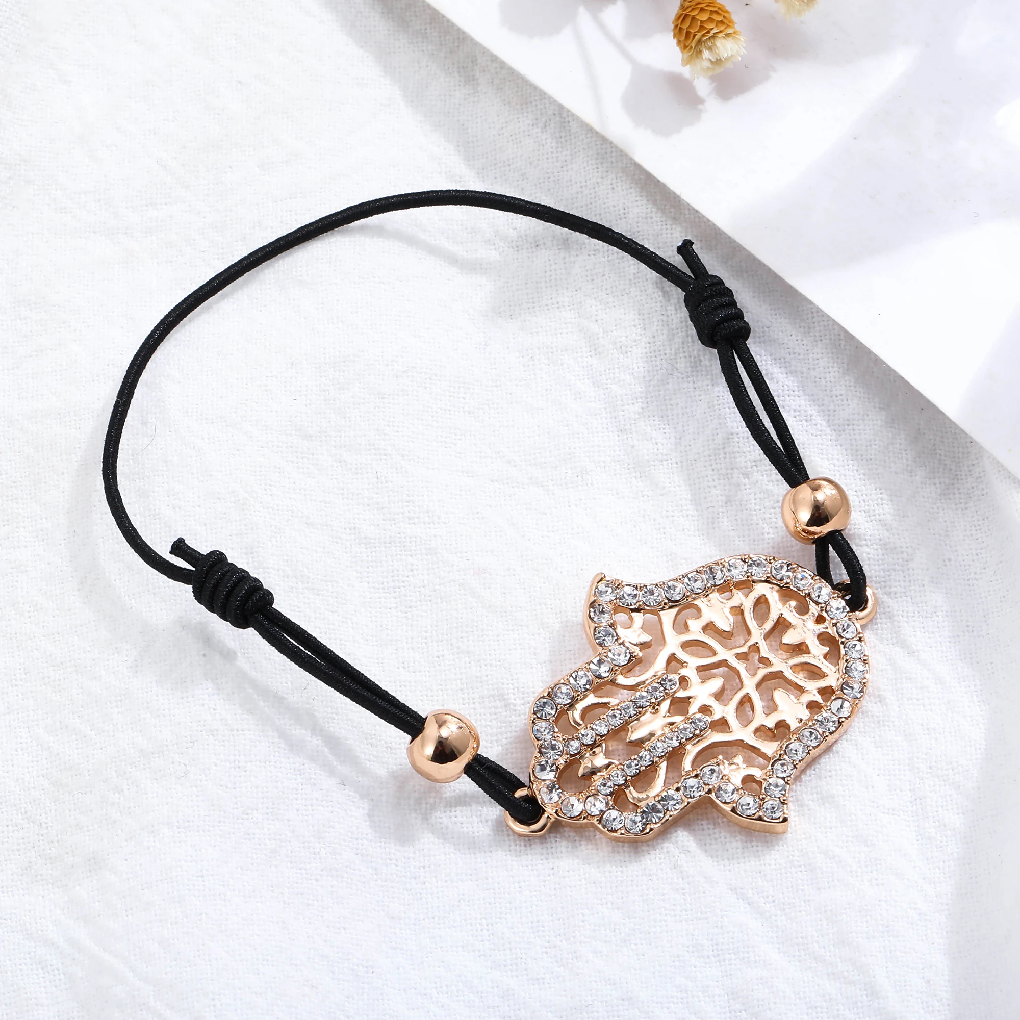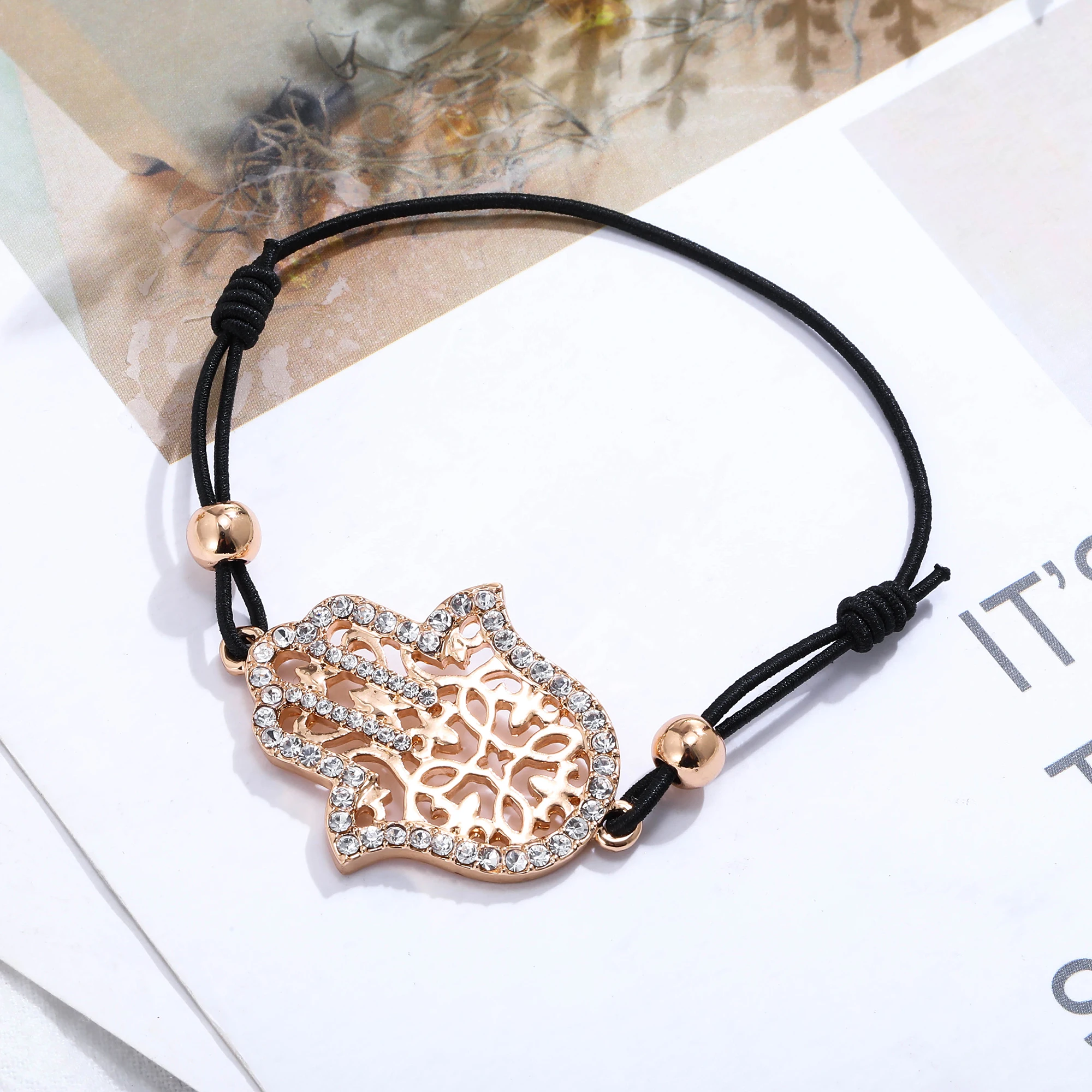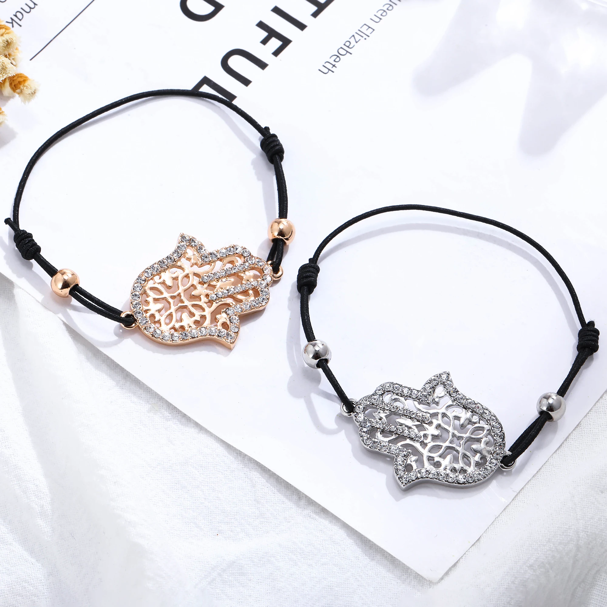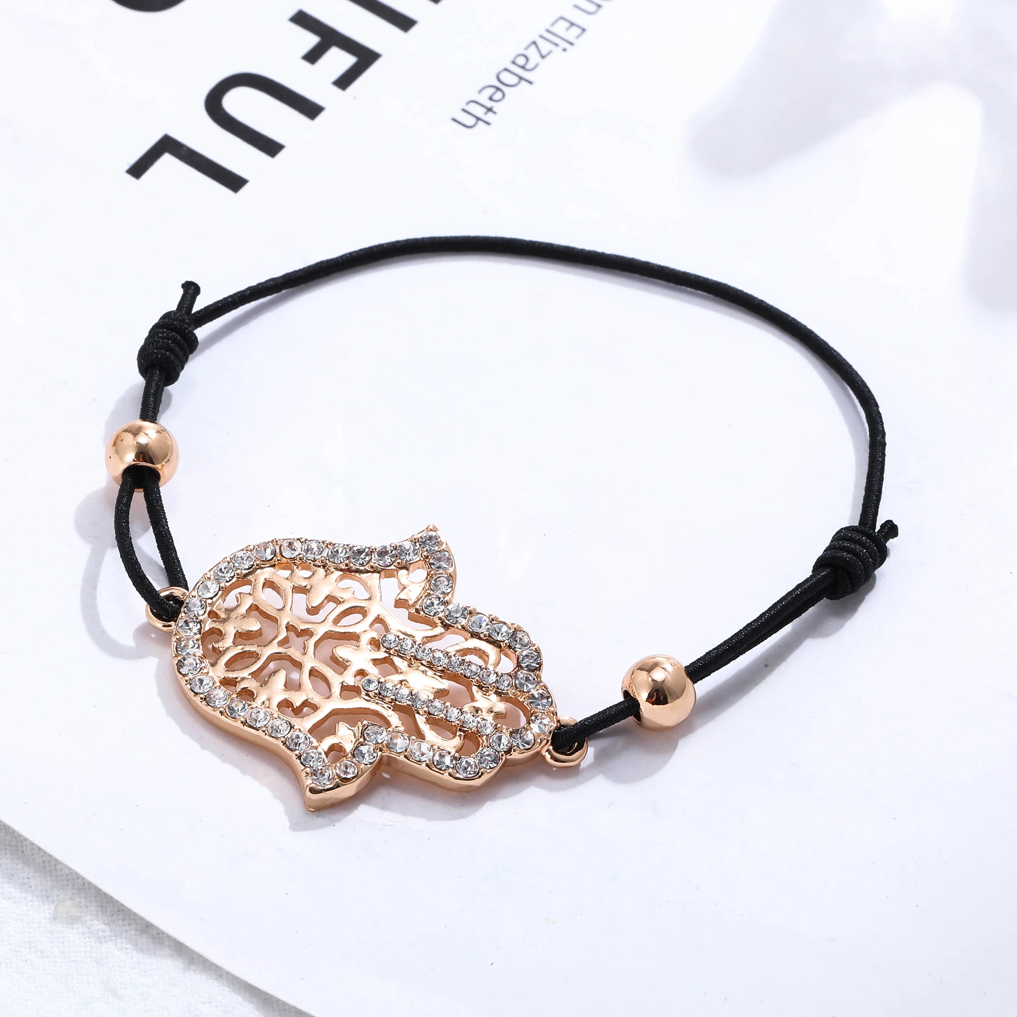 Hand Hamsa Fatima Bracelet Gold Silvery Crystal Pendant Hollow Rope Women Bracelets Leather Buddhism Jewelry Women Accessorie