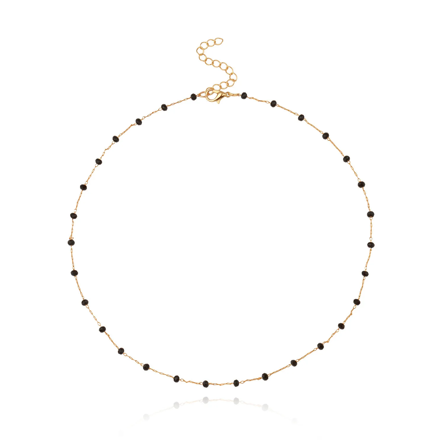 Handmade Black Beads Charm Necklace Women Gold Silver Color Chain Choker Necklace Jewelry Gifts XL1302