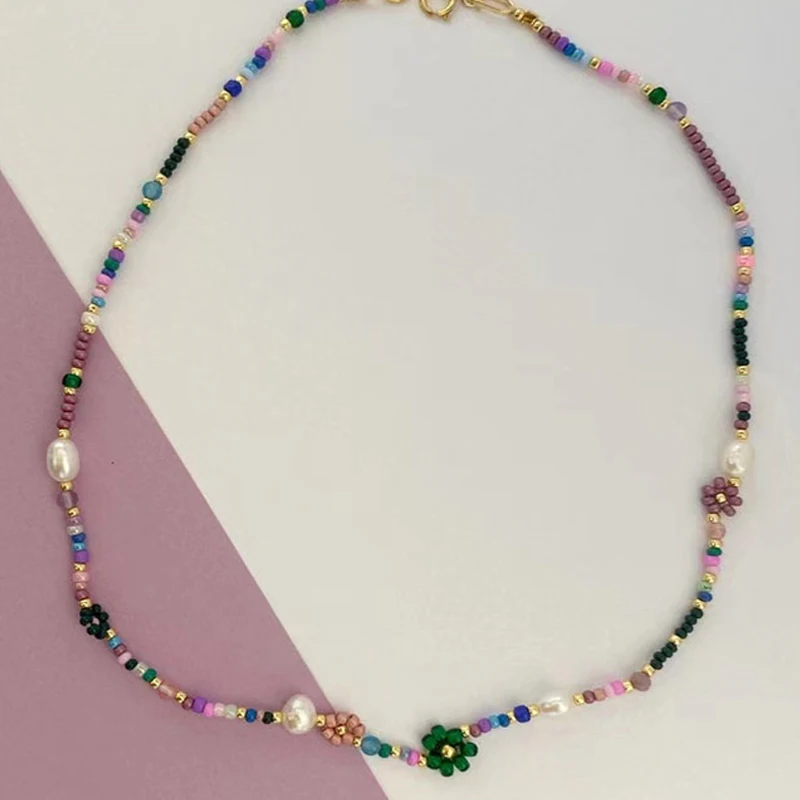 Handmade Natural Pearl Mix And Match Colorful Beaded Florets Ladies Short Necklace Jewelry Accessories Exquisite Gifts