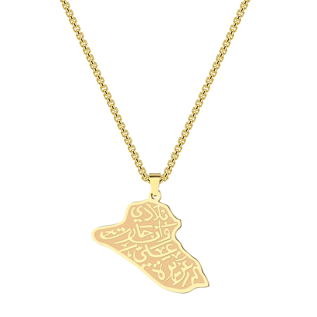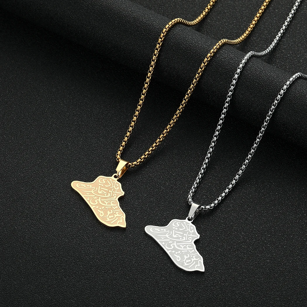 Handmade Syria Map Pendant Arabic Necklace With Famous Poem Verse Stainless Steel Vintage Jewelry Necklaces Collier