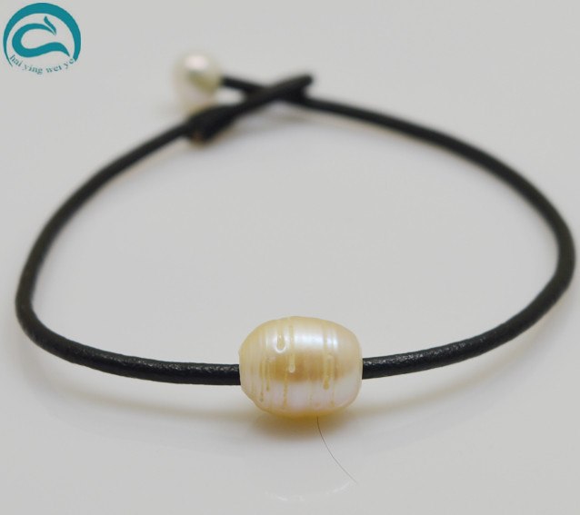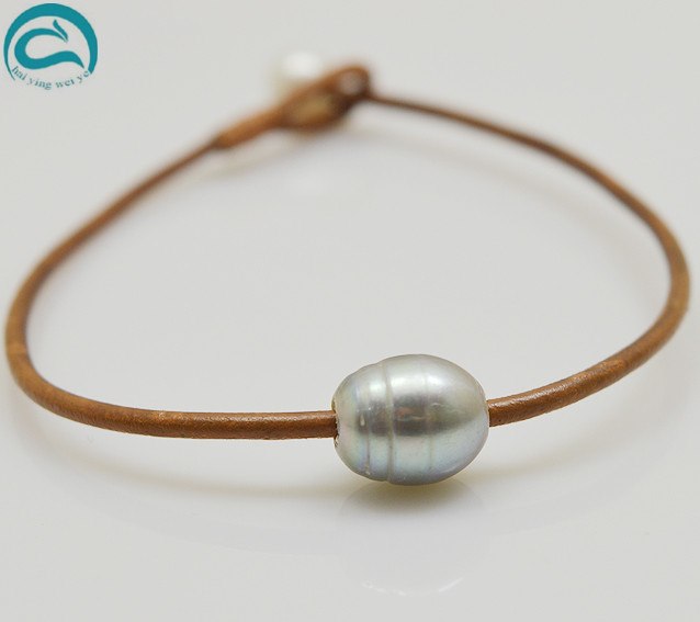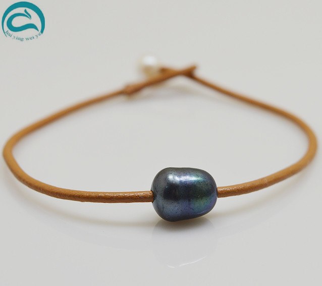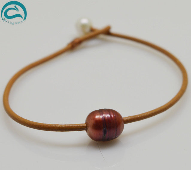 Handwork Leather Pearl Jewellery,100% Real Natural Pearls Brown Black Leather Bracelet,Fashion Women Girl Bracelet