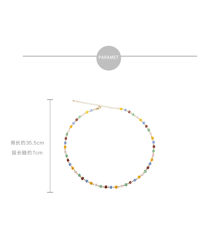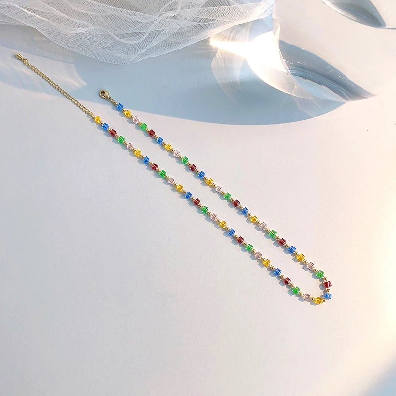 HangZhi 2021 Japan Korea Colorful Small Transparent Crystal Square Beaded Necklace Short Choker for Women Holiday Jewelry