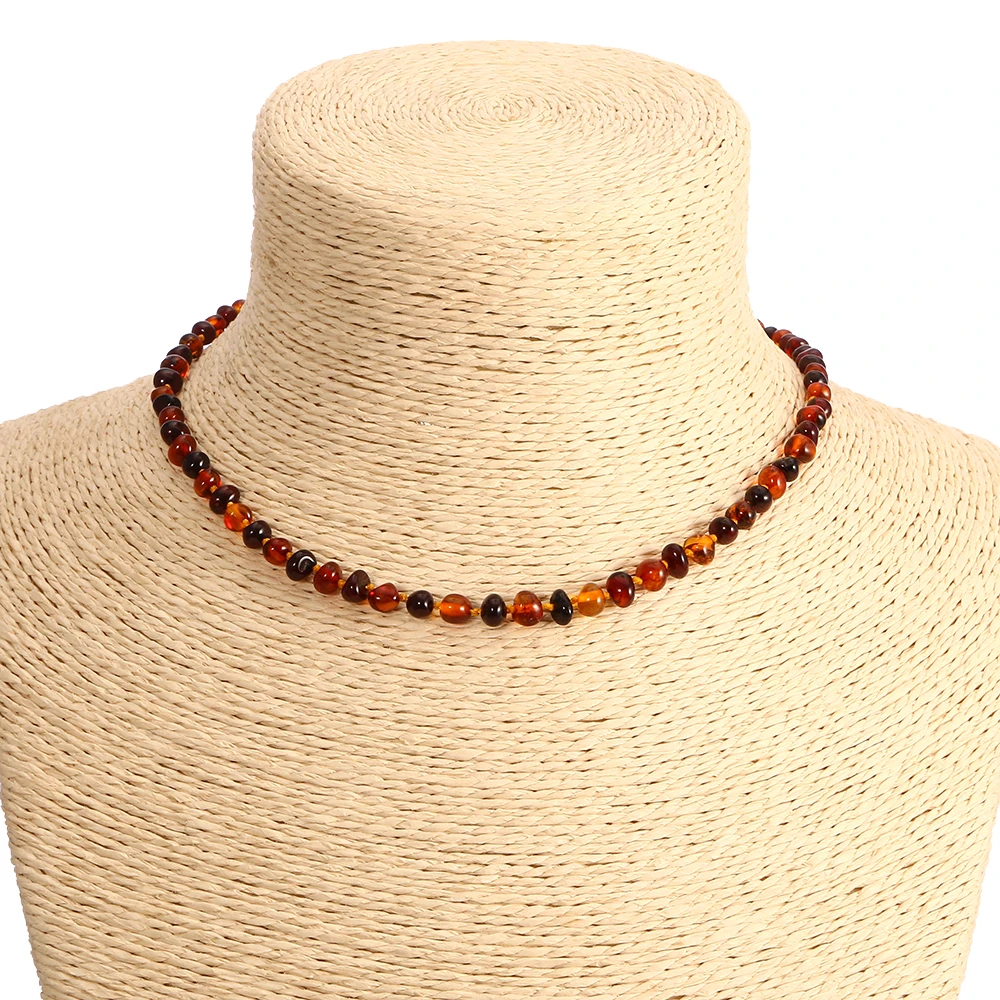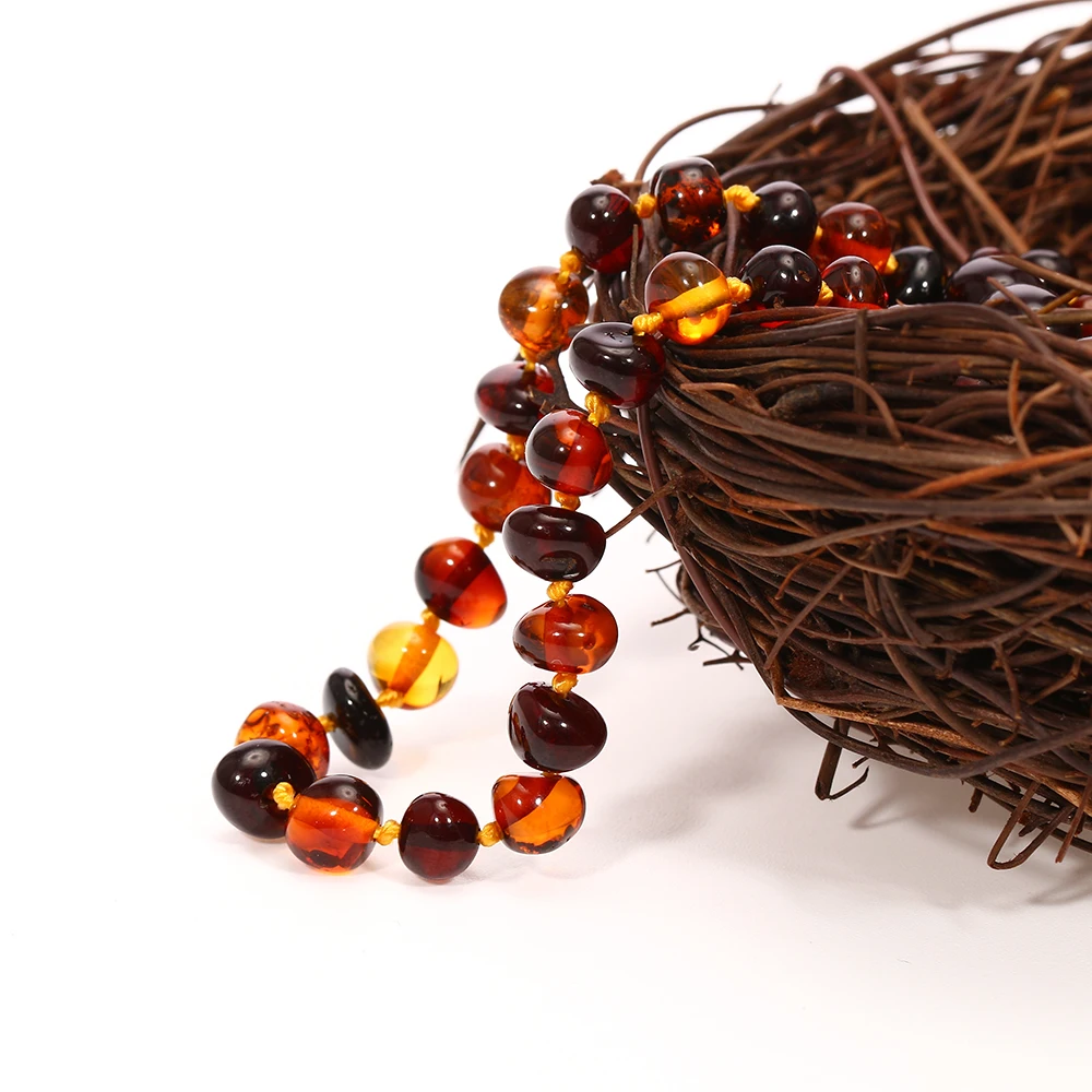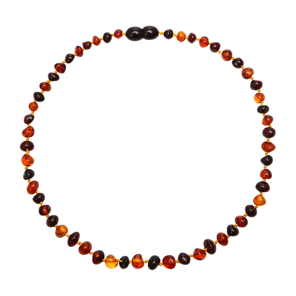 Baltic Amber Teething Necklace for Babies (Unisex) Cherry with Cognac 100% USA Lab-Tested Authentic Amber Bracelet