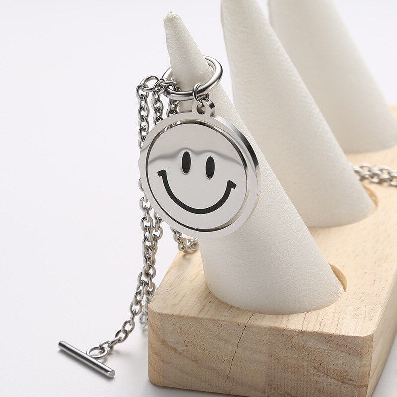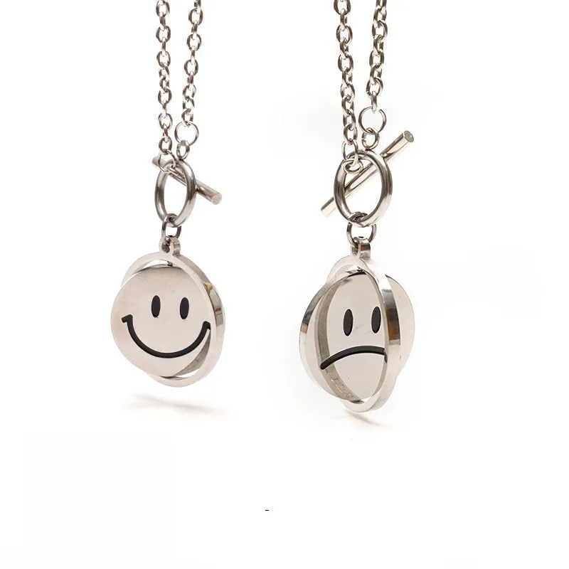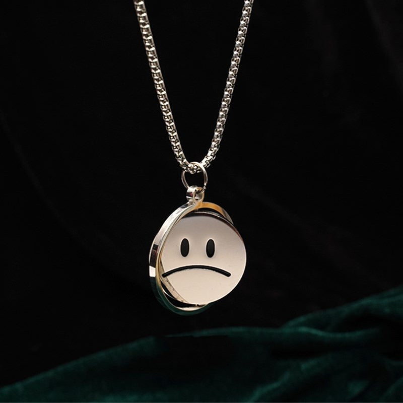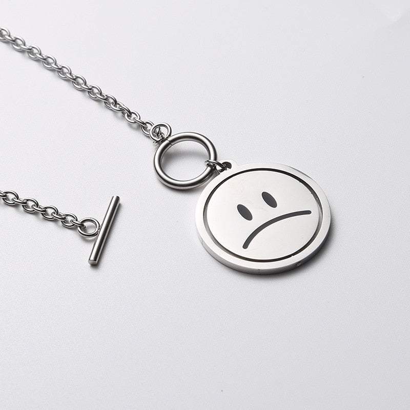 Happy Unhappy Swiveling Coin Pendant Necklace Choker Toggle Clasp Cool Jewelry