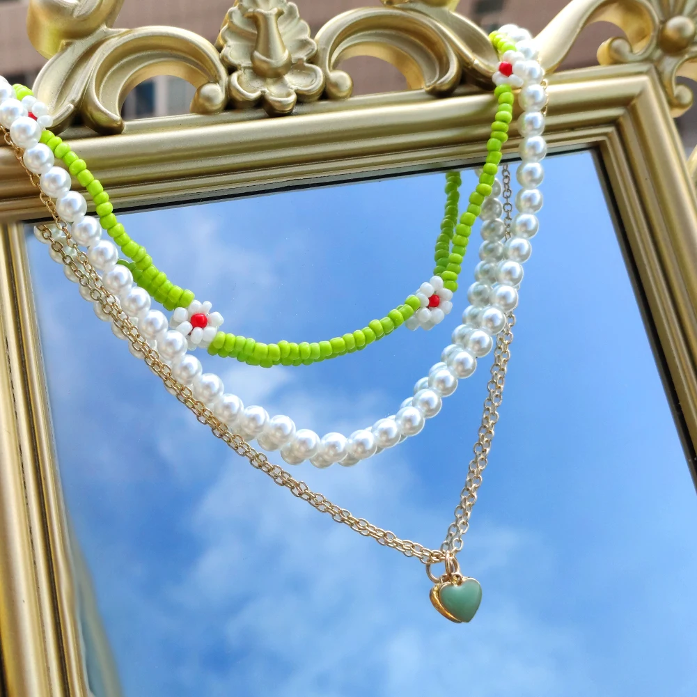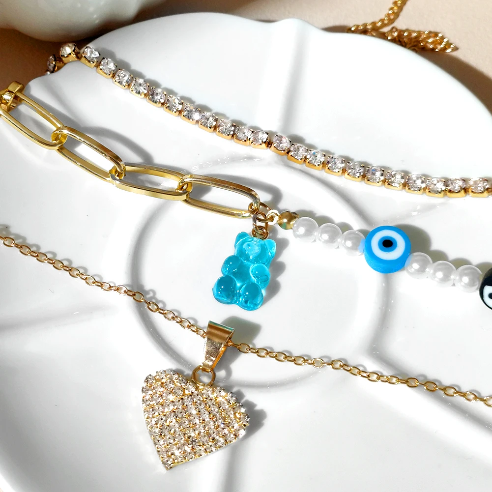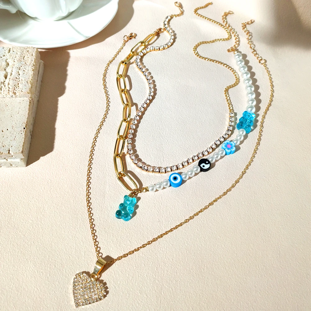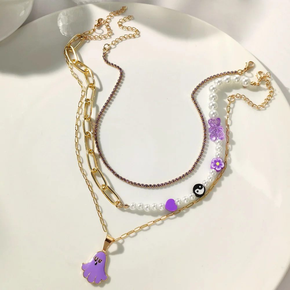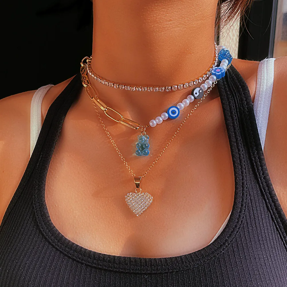 Harajuku Gummy Bear Balloon Dog Asymmetry Pearl Necklace For Women Handmade Flower Bead Choker Y2K Korean Multilayered Jewelry