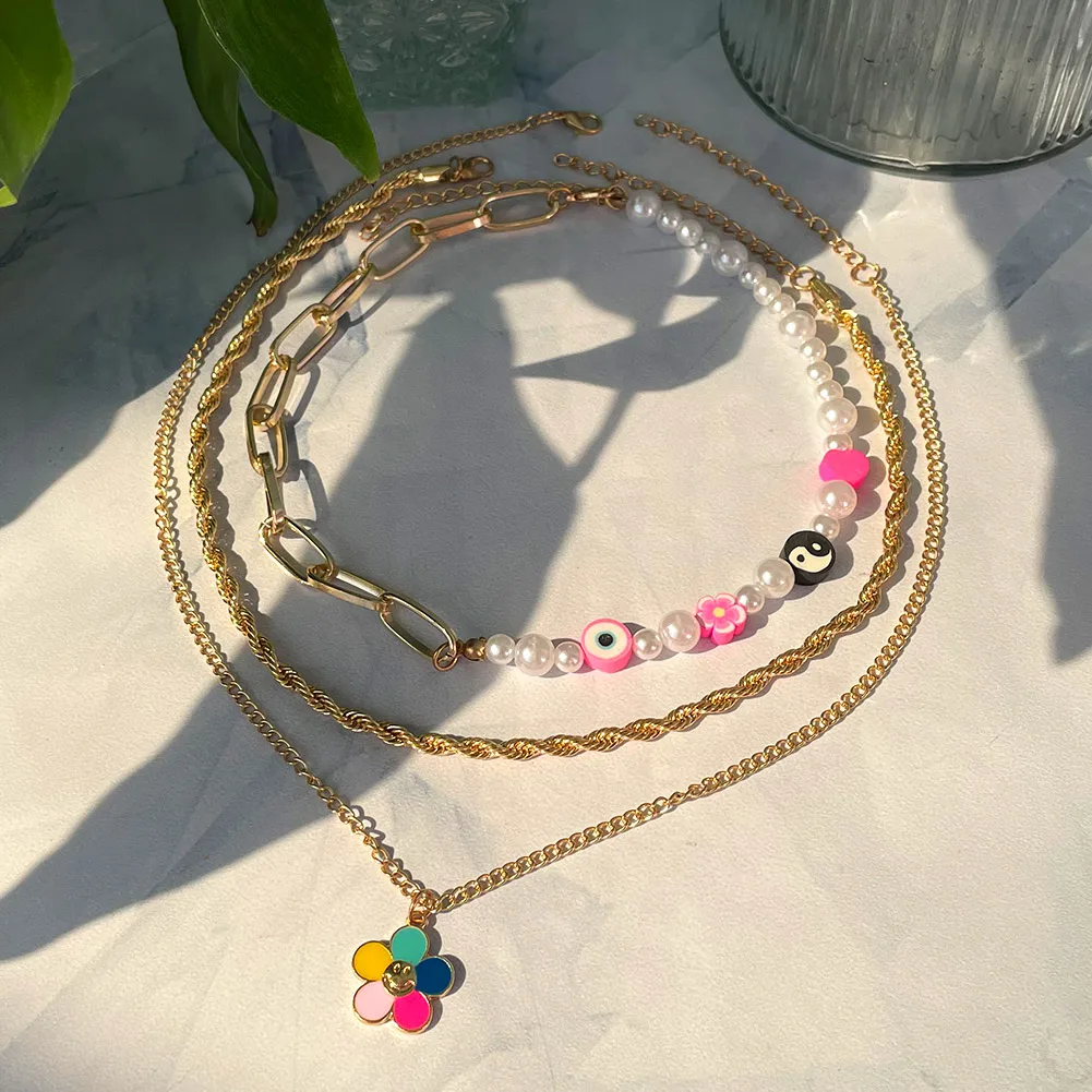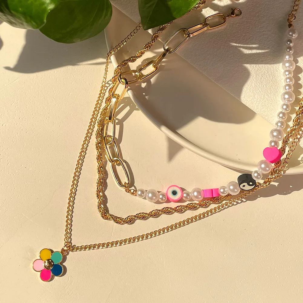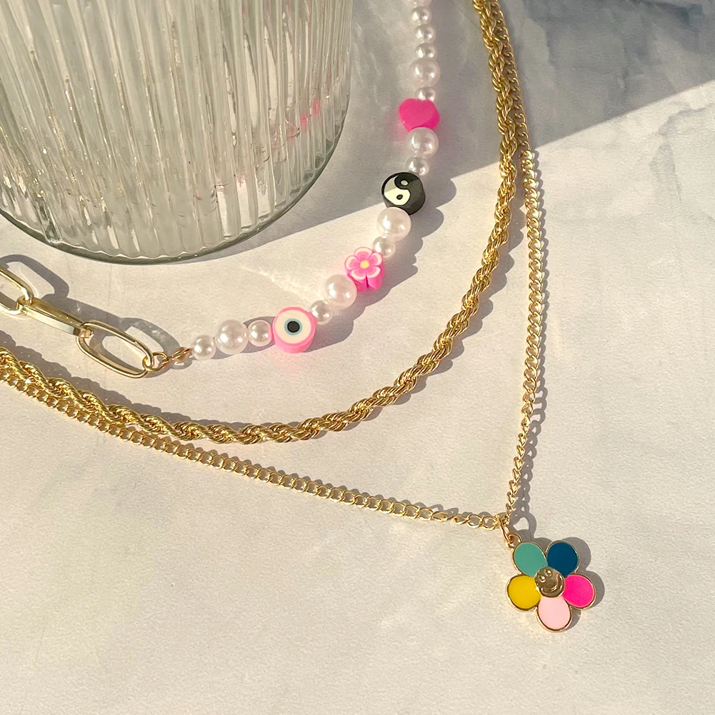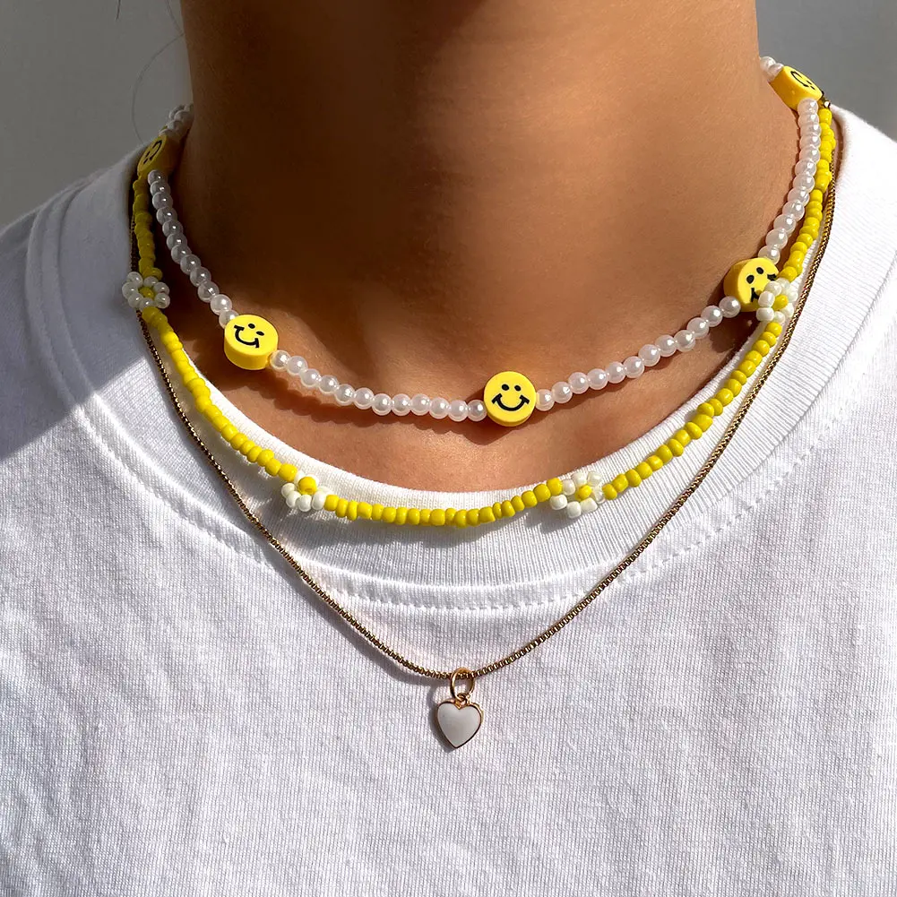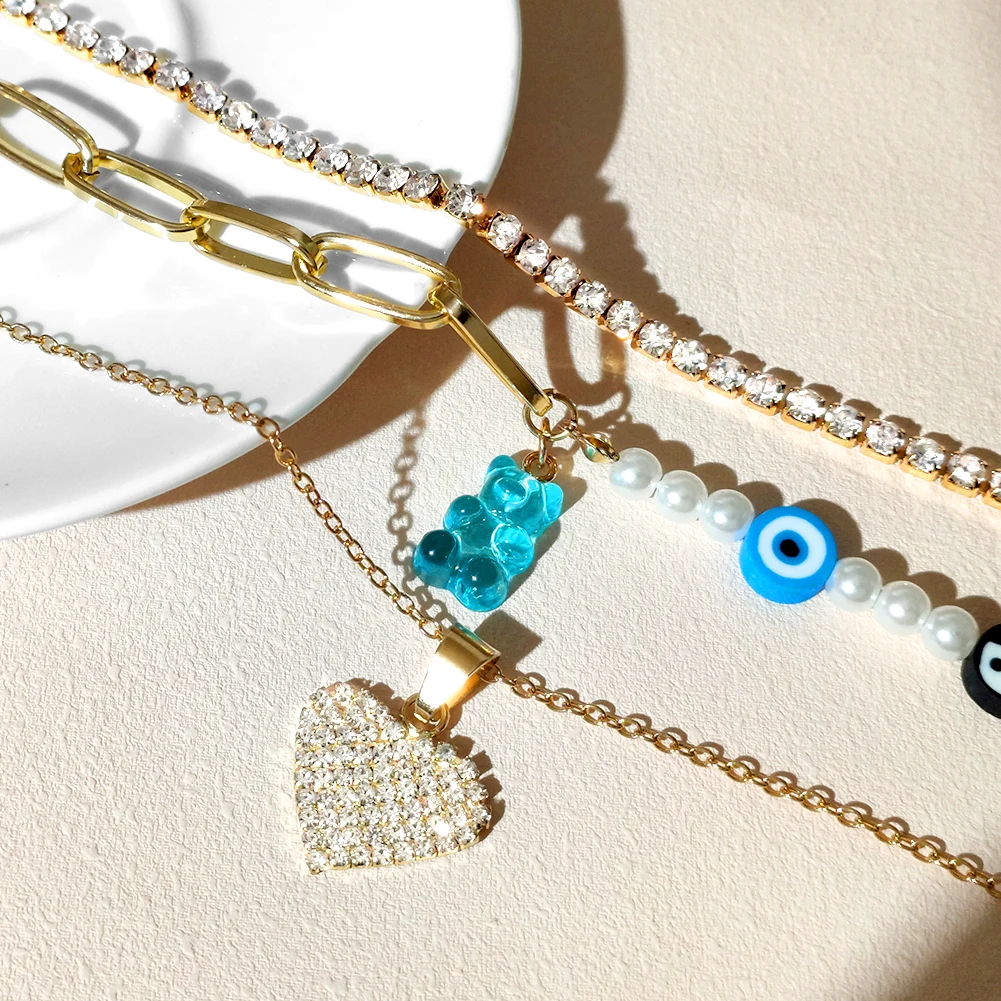 Harajuku Gummy Bear Balloon Dog Asymmetry Pearl Necklace For Women Handmade Flower Bead Choker Y2K Korean Multilayered Jewelry