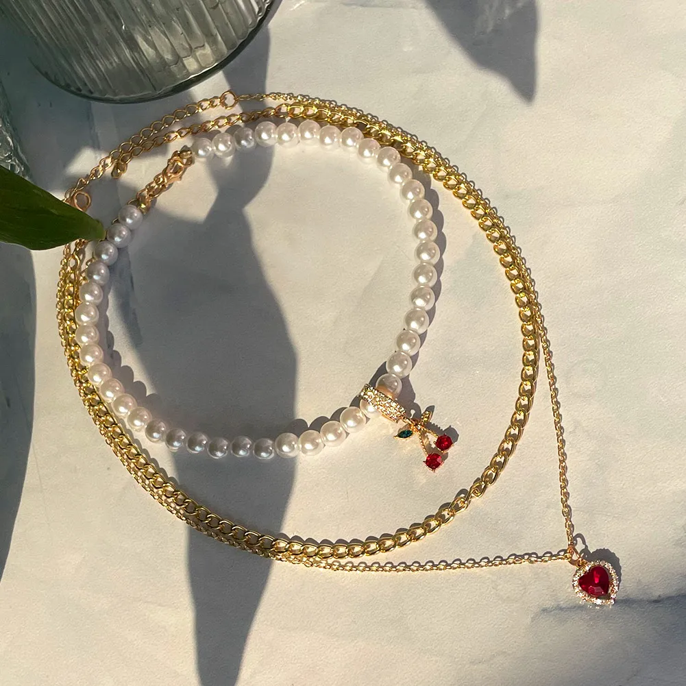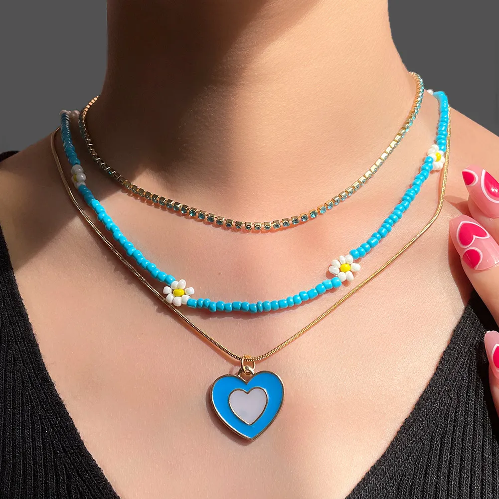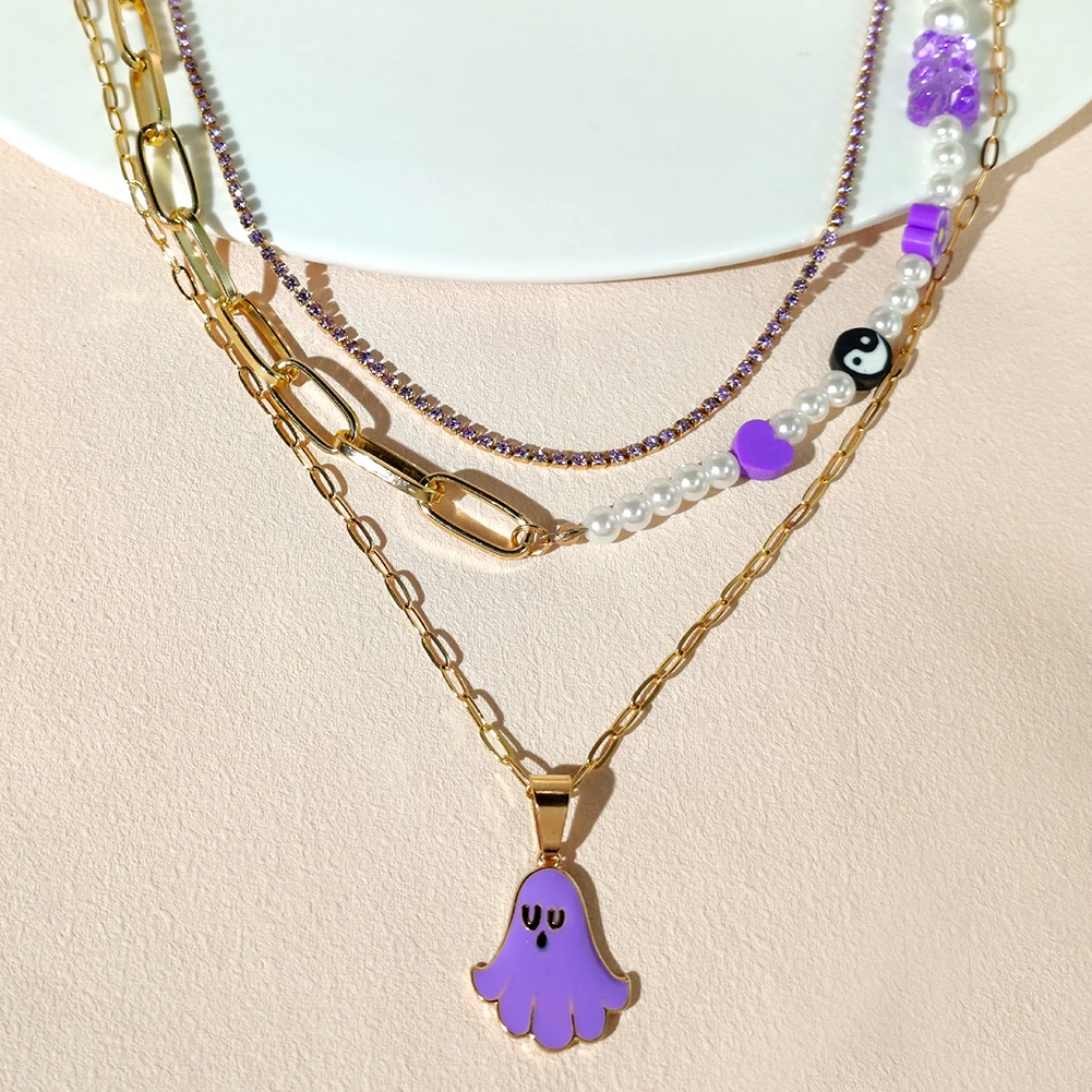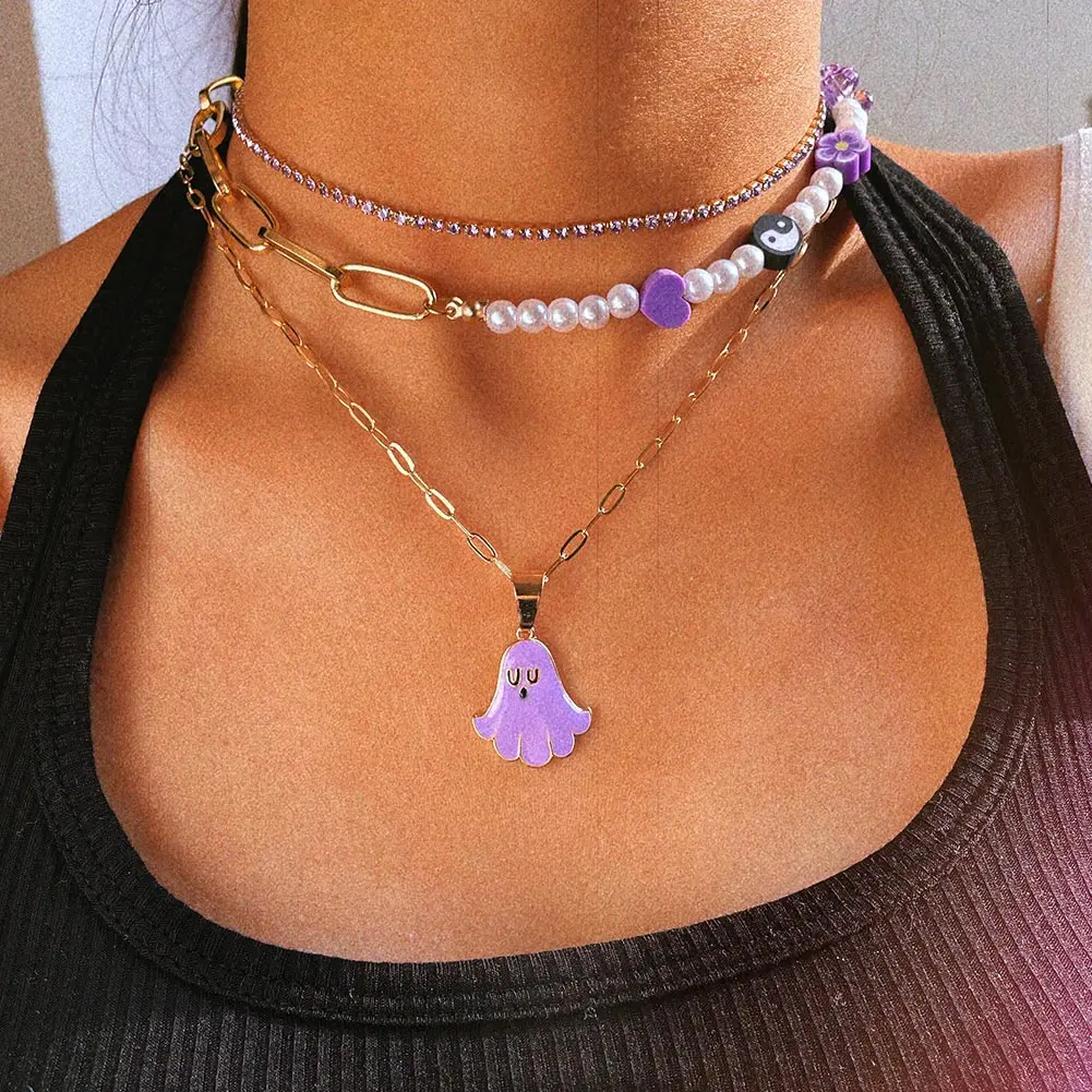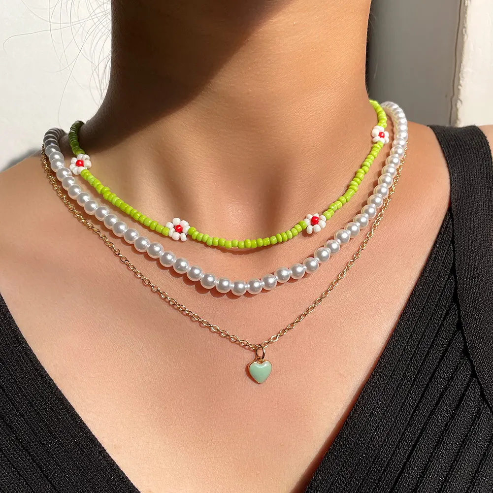 Harajuku Gummy Bear Balloon Dog Asymmetry Pearl Necklace For Women Handmade Flower Bead Choker Y2K Korean Multilayered Jewelry