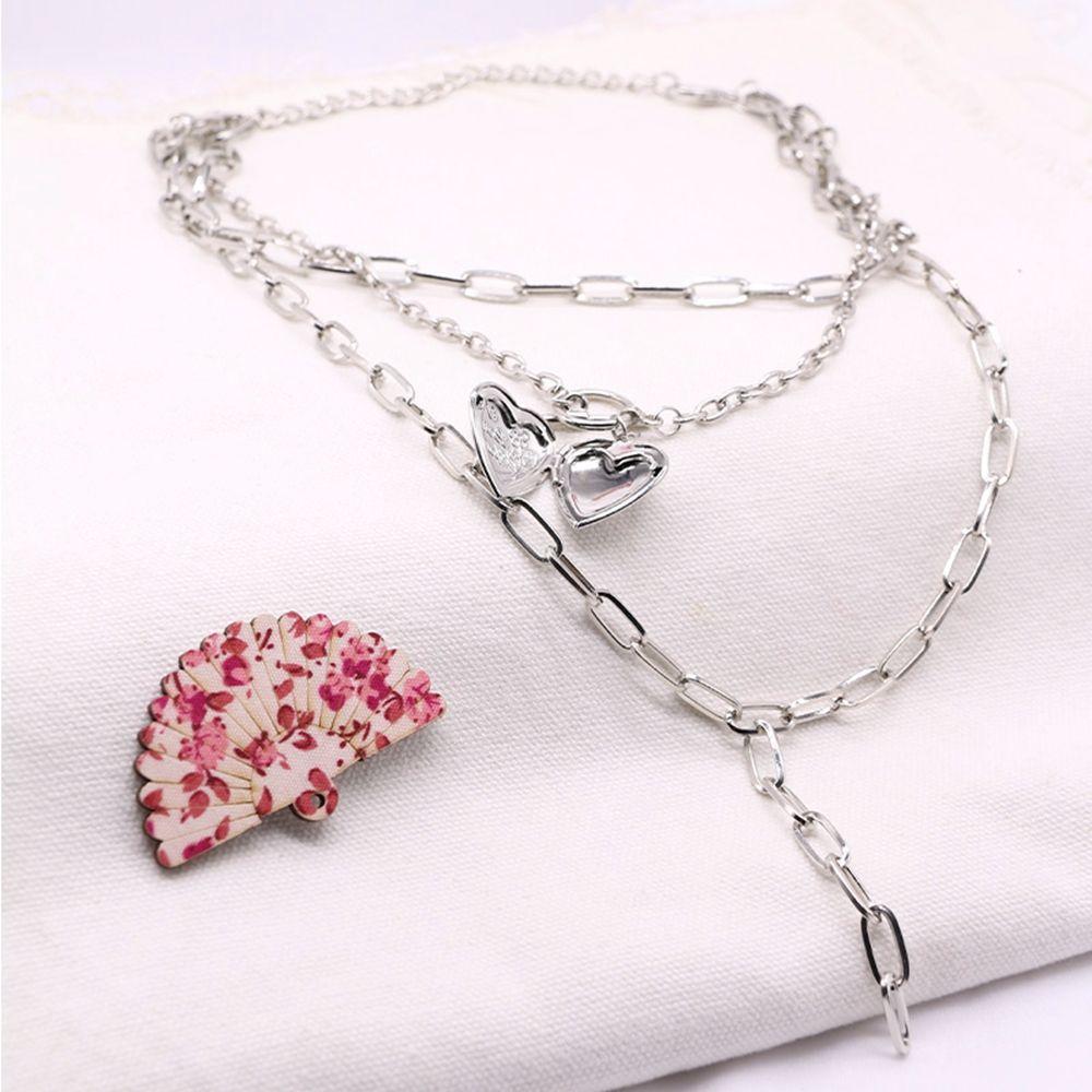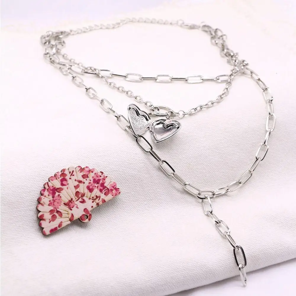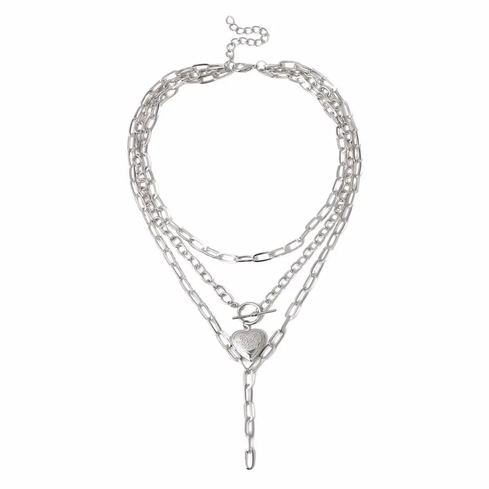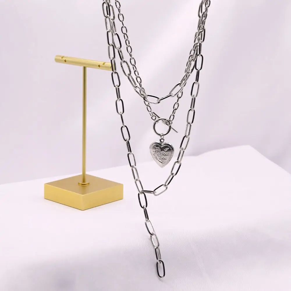 Harajuku Retro Love Peach Heart OT Buckle Necklace Geometric Creative Y-shaped tassel Three-layer Long Chain Pendant Jewelry