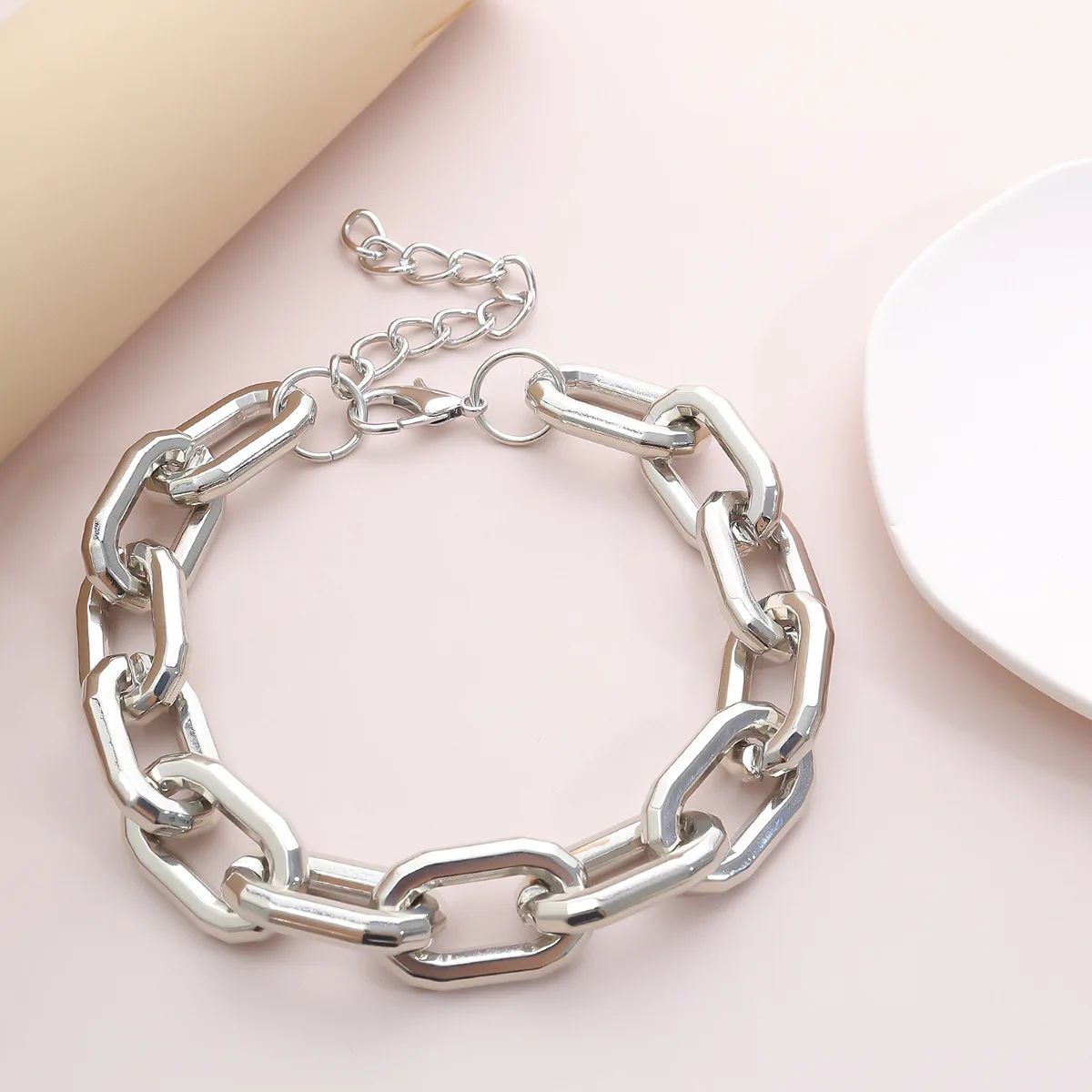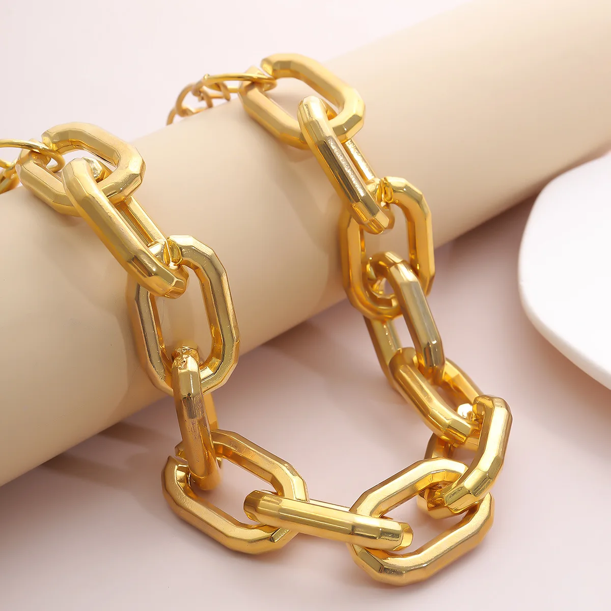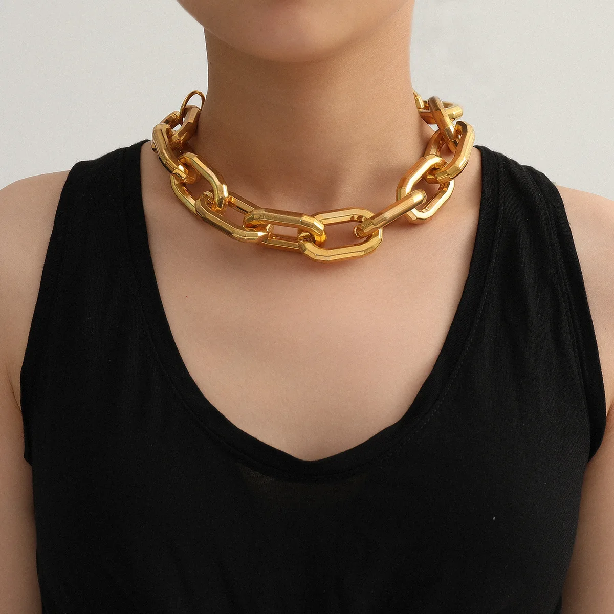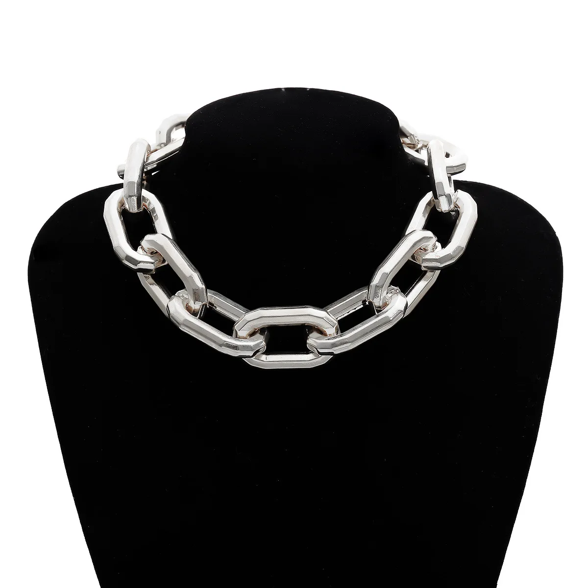 Harajuku Streetwear Hyperbole CCB Choker Necklace Punk Style Gold Silver Color Pendant Necklace Rock Chain Jewelry Accessories