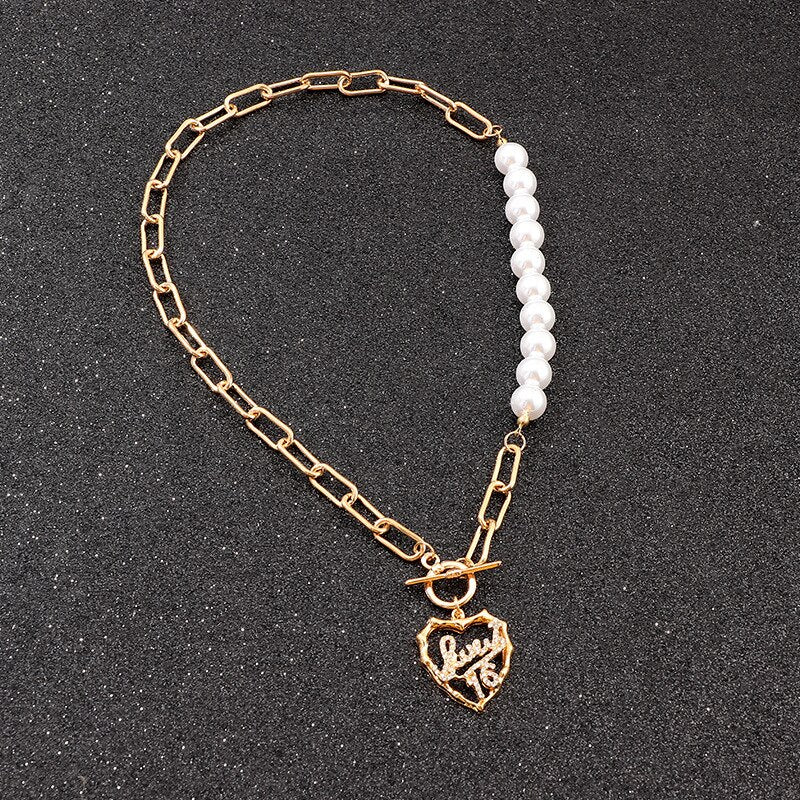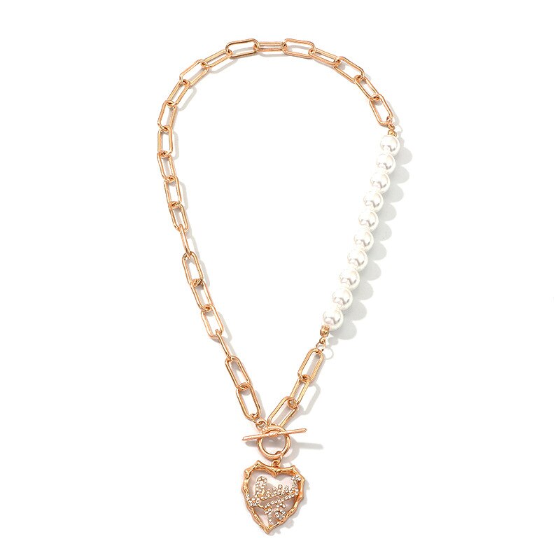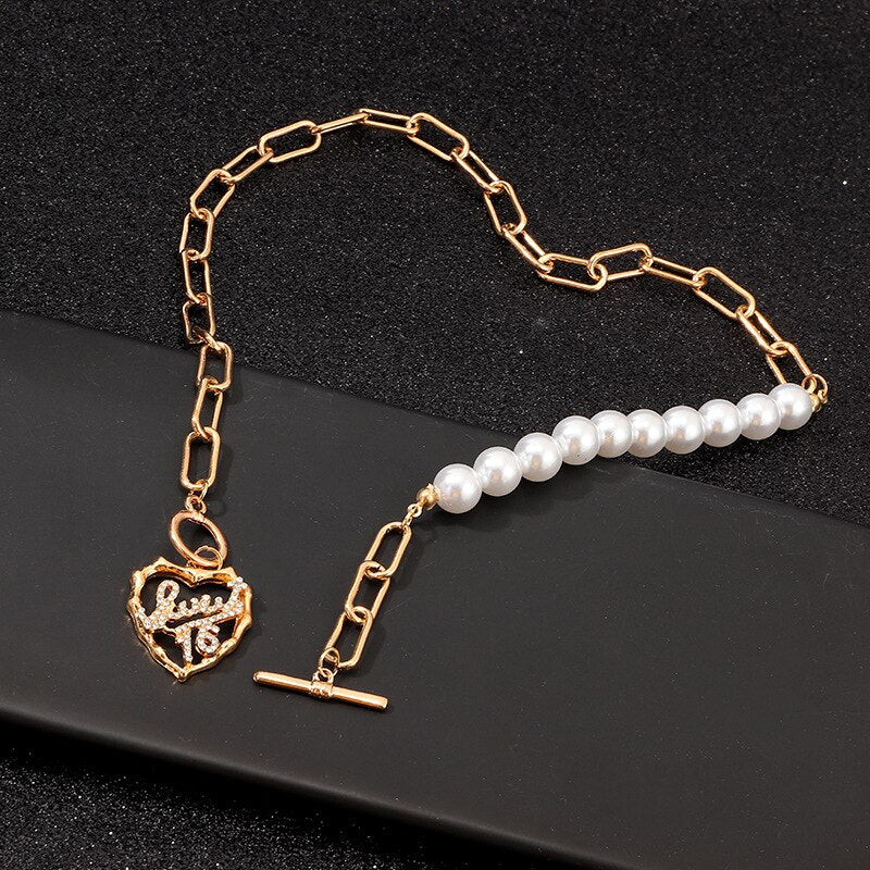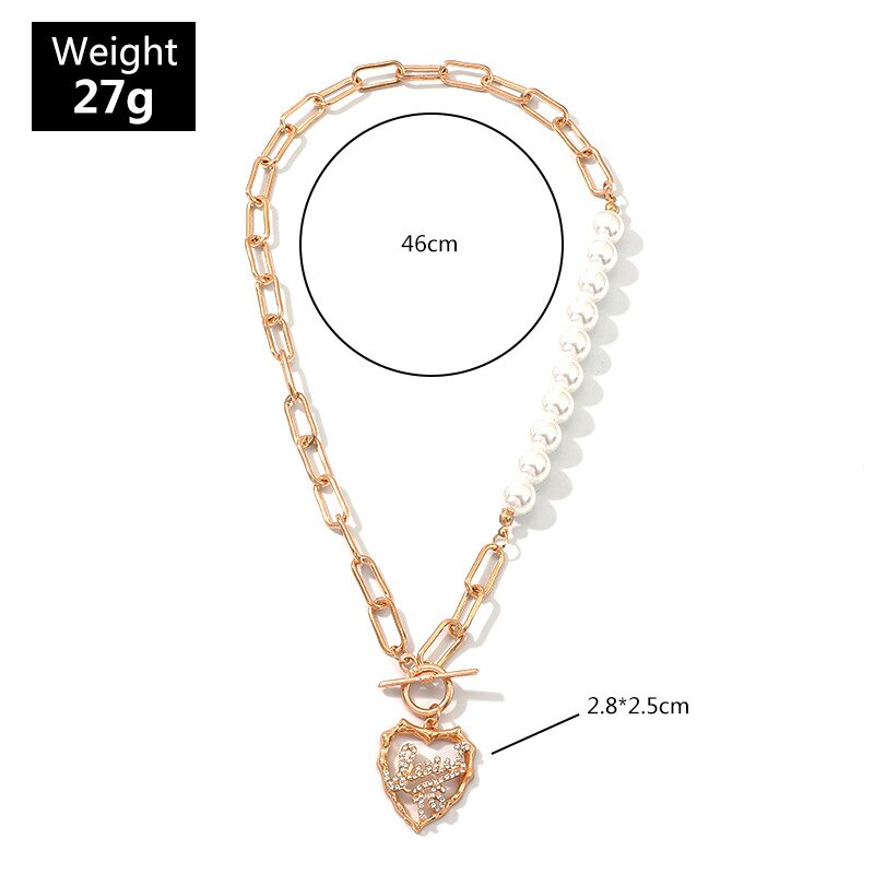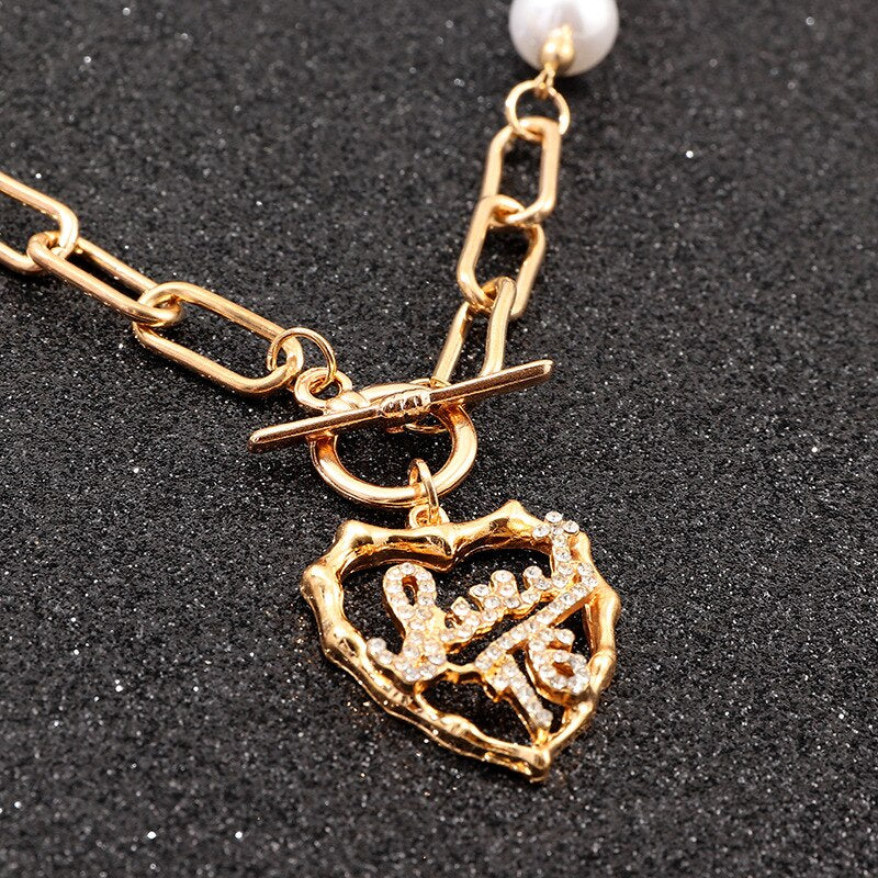 Heart Necklaces Womens Popular Metal Pearl Chain Girlfriend Love Alphabet Letters Rhinestone Pendant Jewelry For Girls