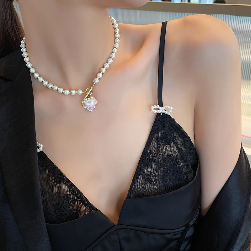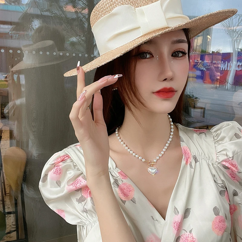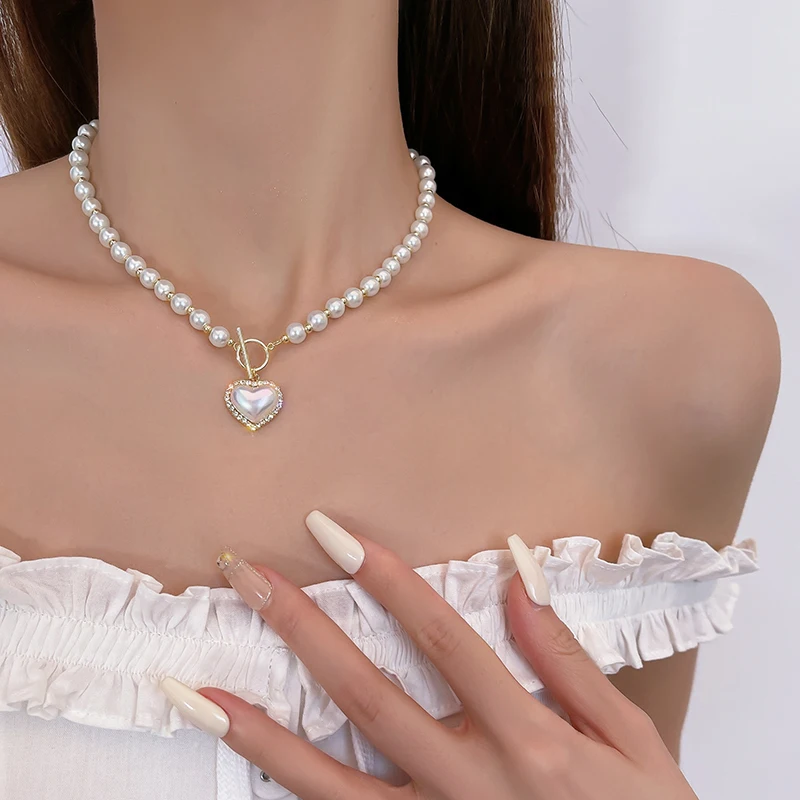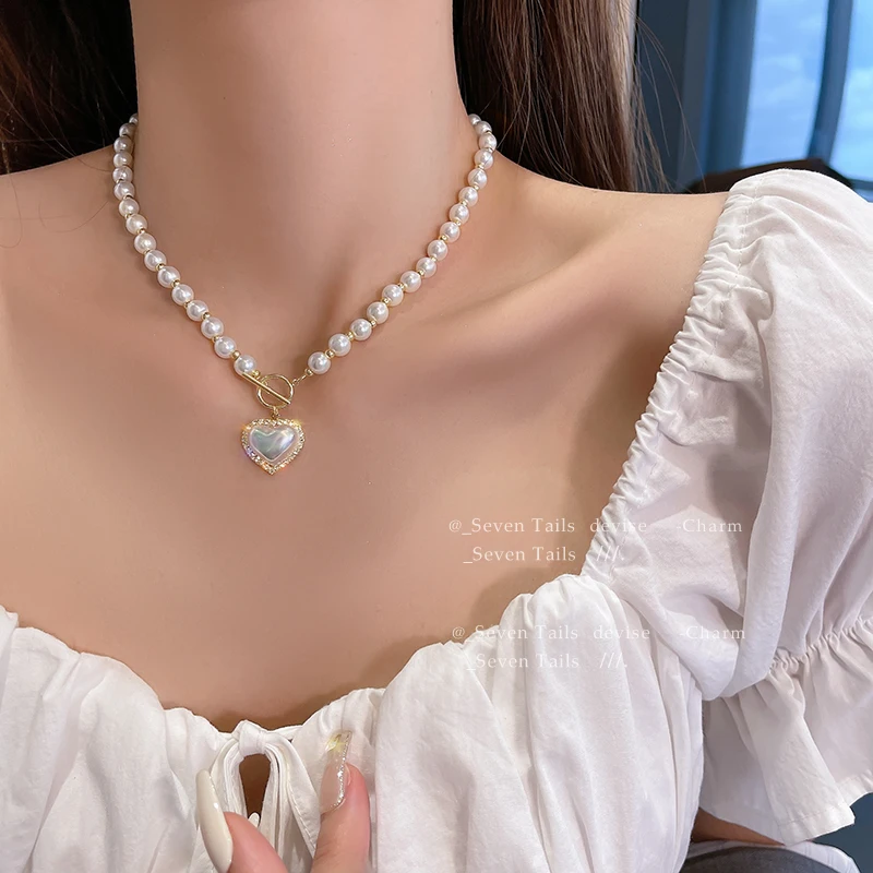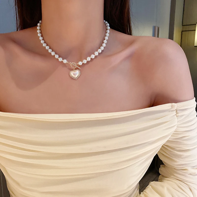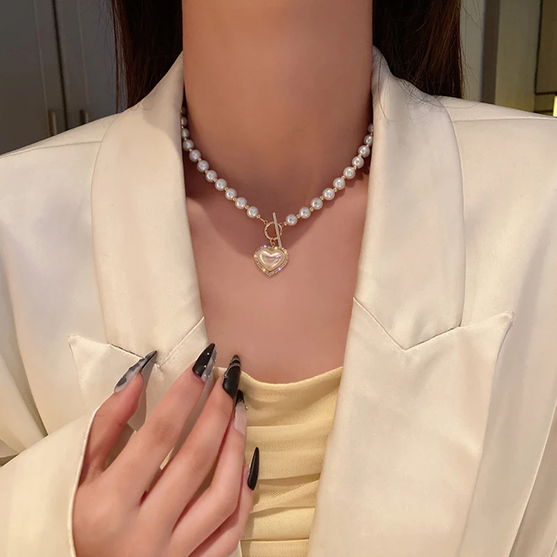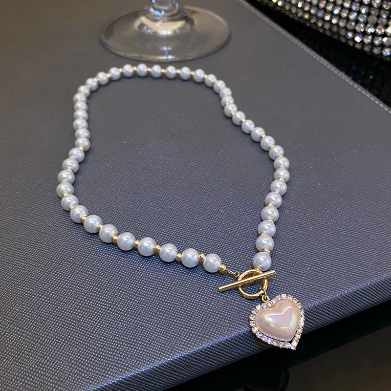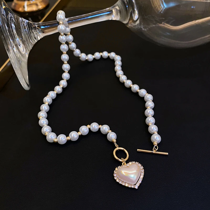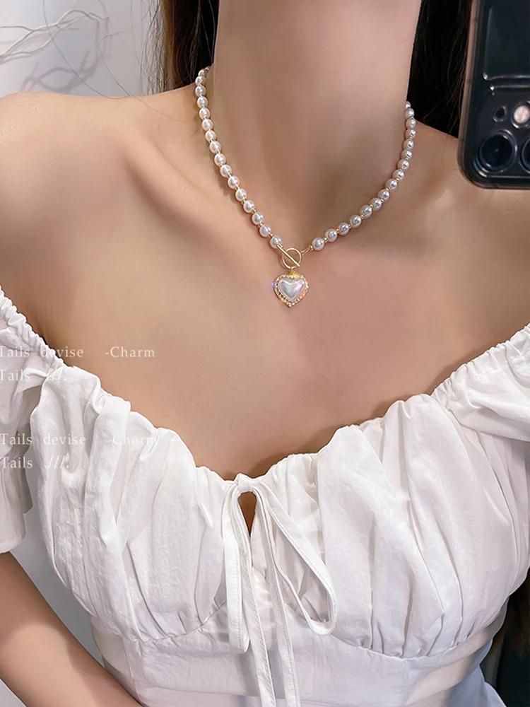 Heart shape Pendant Vintage Pearl Necklaces Women Elegant Charm French Romantic Style Clavicle Chain Commemorative Gift