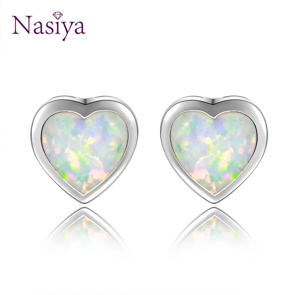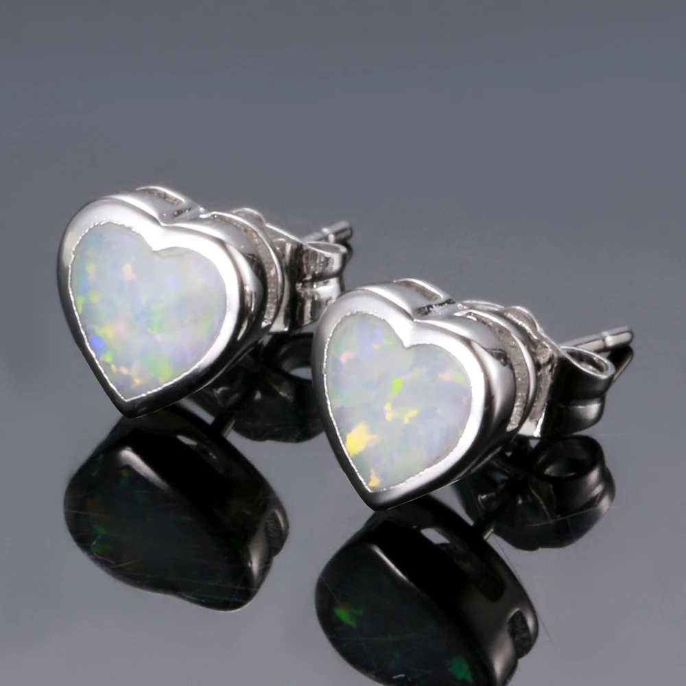 Heart White Opal Stud Earrings Silver 925 Jewelry Earring For Women Engagement Anniversary Party Gift 2 colors Fine Jewelry
