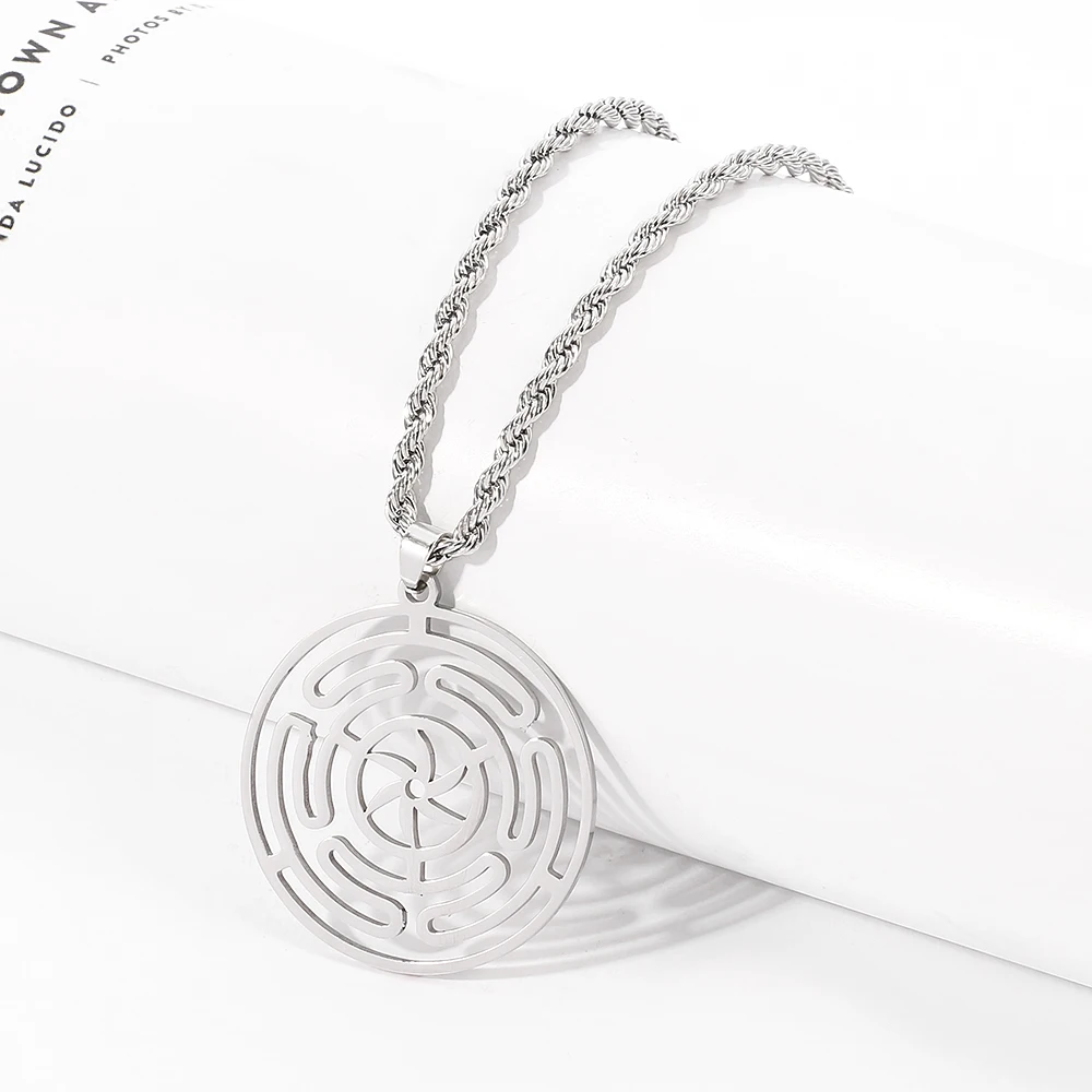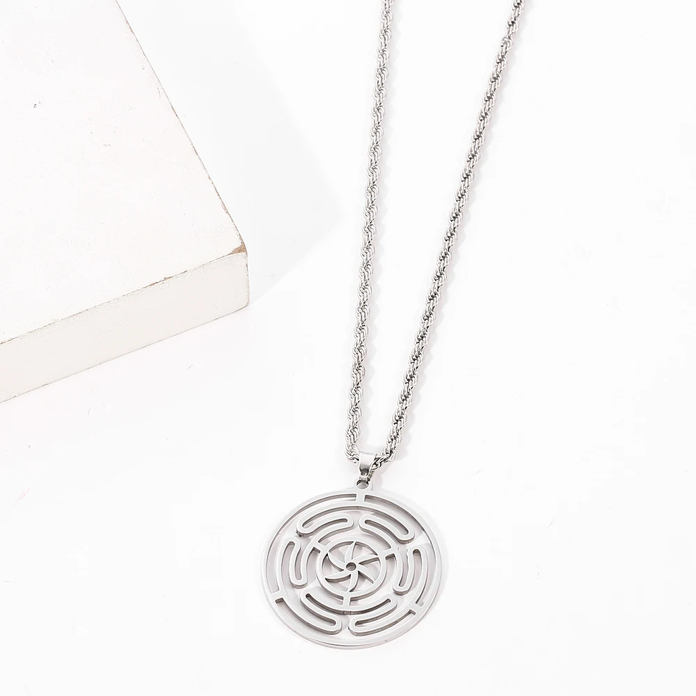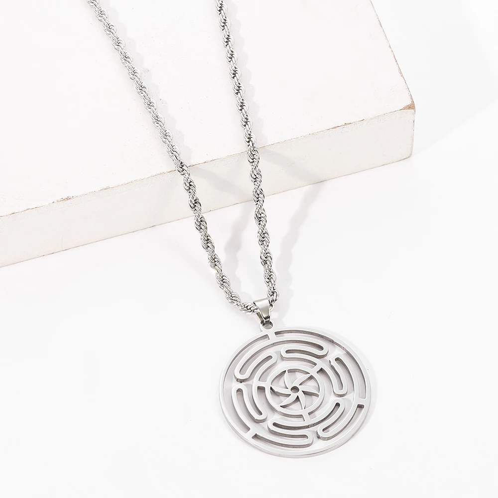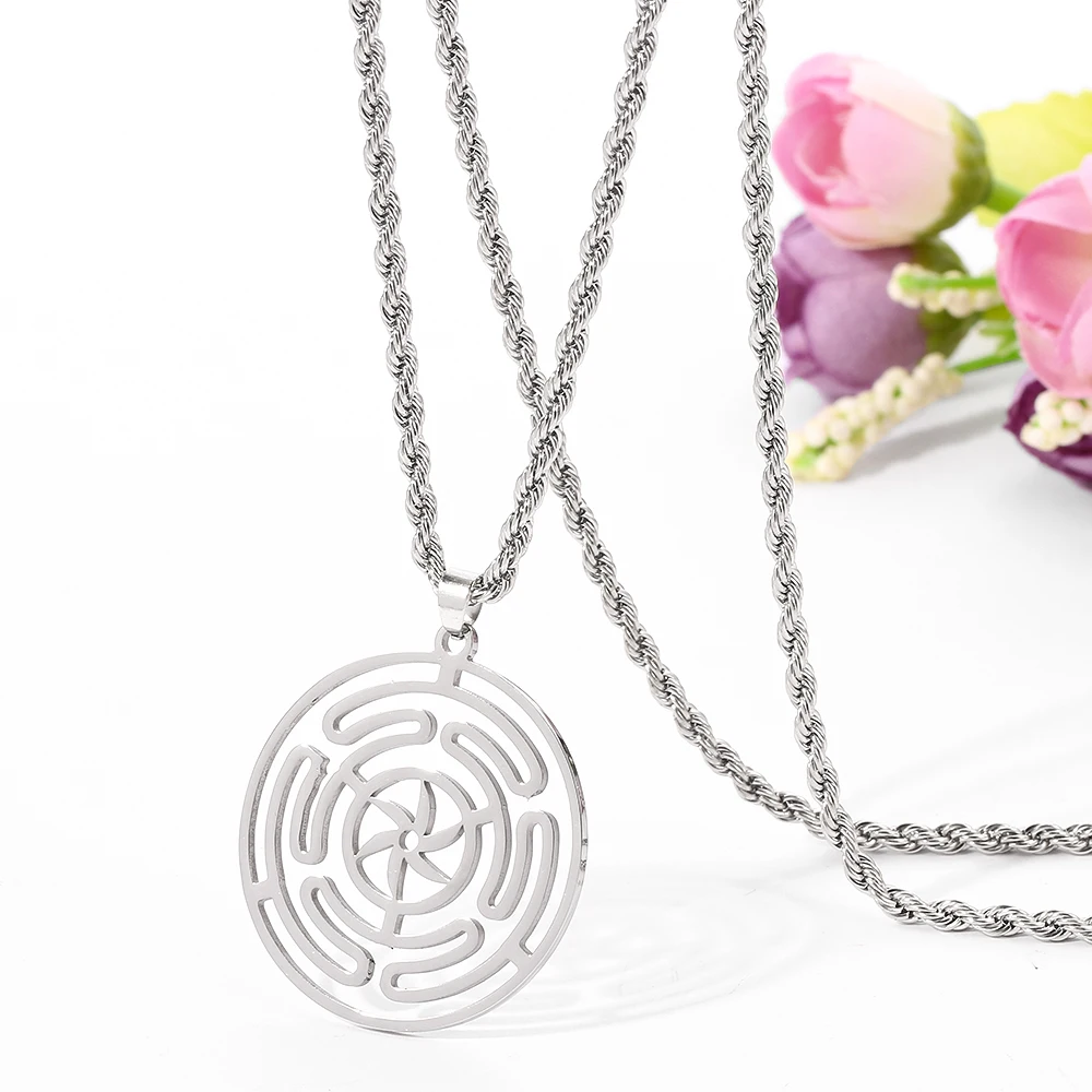 Hekate Round Stainless Steel Necklace Pendant Strophalos Hecate Magic Symbol Logo Charm Colier Femme Jewelry For Women Men Gift
