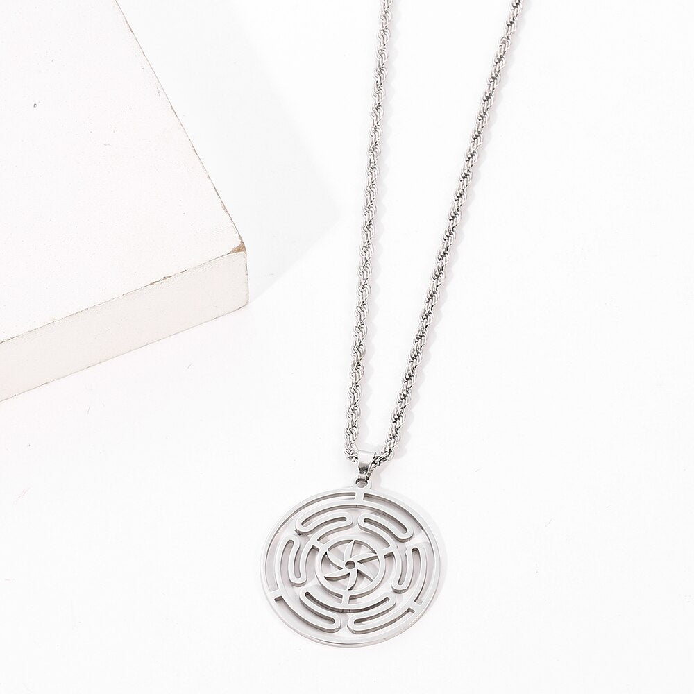 Hekate Wheel Stainless Steel Long Necklace Pendant Strophalos Hecate Magic Symbol Logo Charm Collar Femme Jewelry Gift