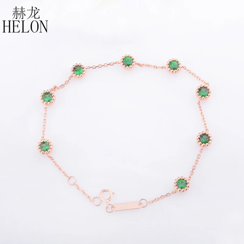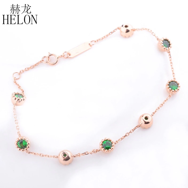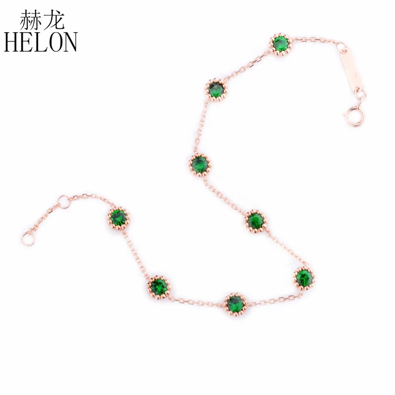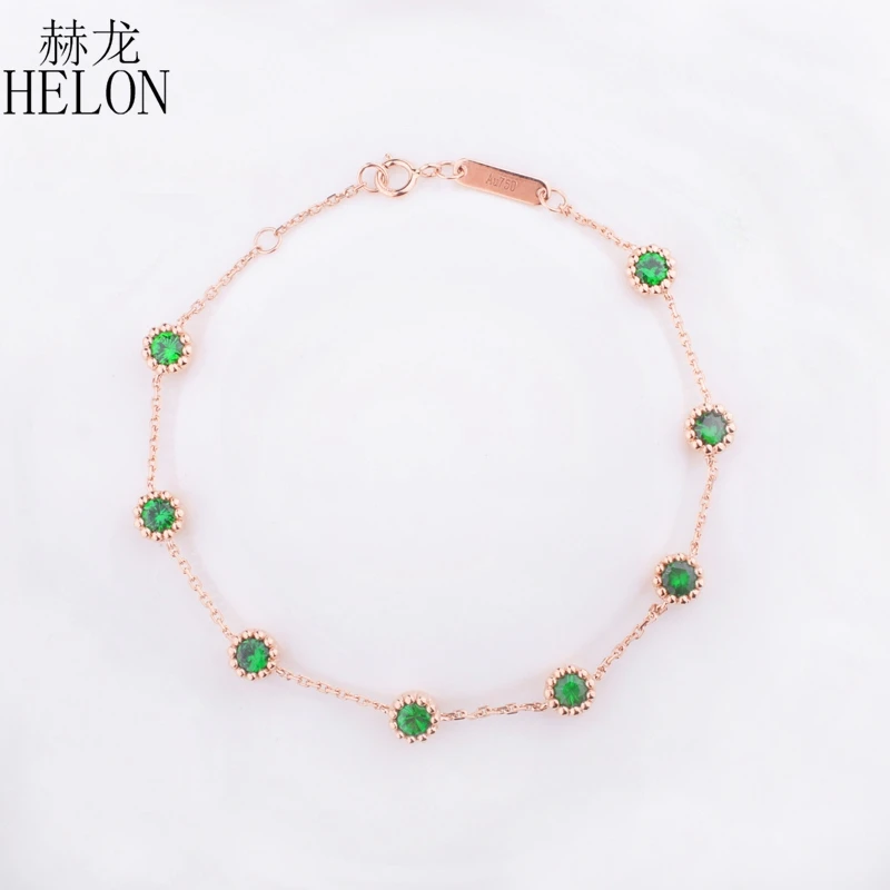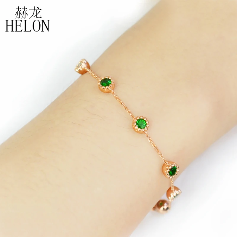 Solid 18k Rose Gold 1.2ct Round Genuine Tsavorite Wedding Bracelet Romantic Women Jewelry Girl Gift Party Trendy Bracelet